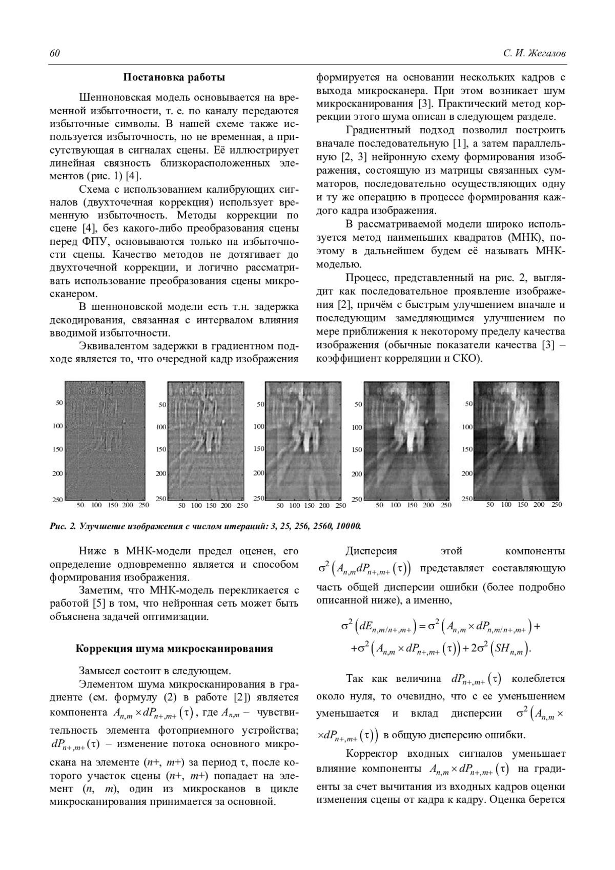 S. I. Zhegalov Model of a neural image formation scheme for the FPA with microscanning 59