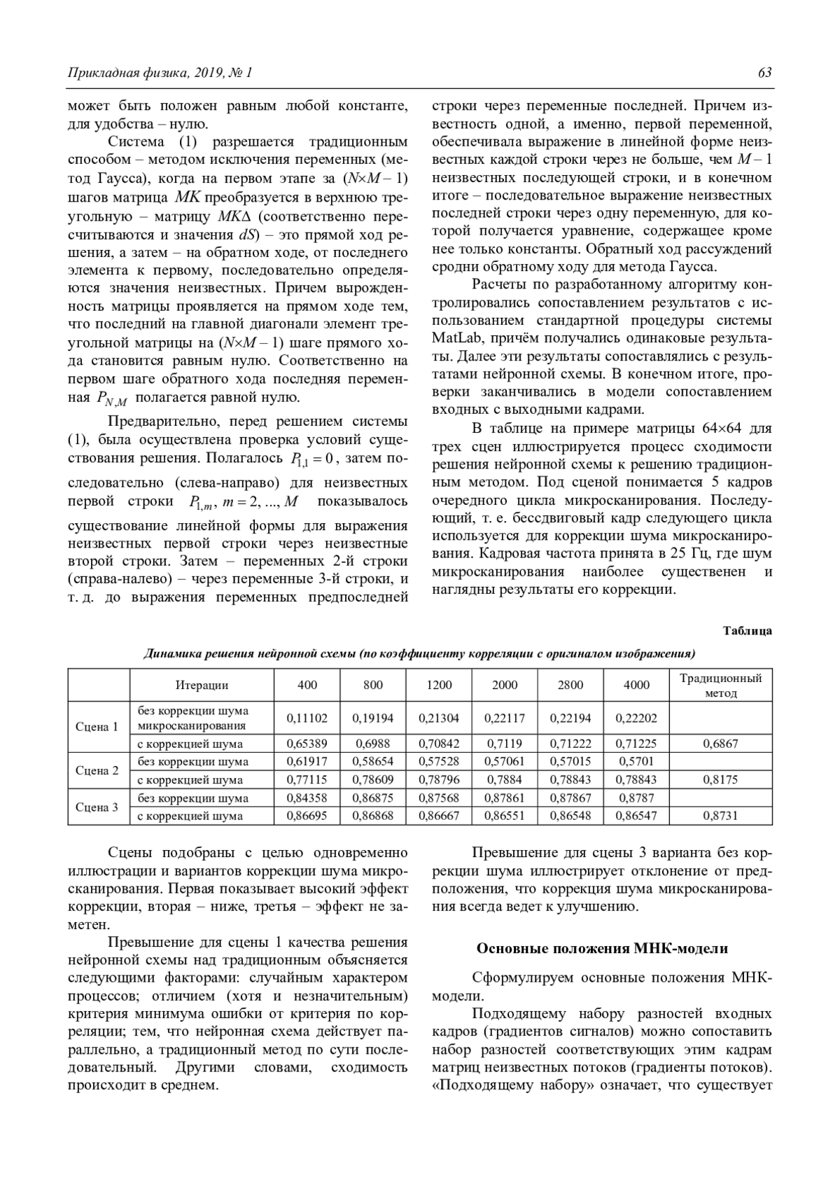 МНК-модель сформулирована из сопоставления градиентов принимаемых сигналов с моделью изображения, включая полезный сигнал плюс шумовые воздействия: неоднородность, дефекты, временной шум.