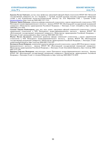 21. Эдильбиев З. В., Федоров А. А., Маллаева Р. М., Эдильбиева Л. В. Лечебные физические факторы при хроническом генерализованном пародонтите (обзор литературы). Физиотерапия, бальнеология и реабилитация. 2021; 20(3): 253-261.