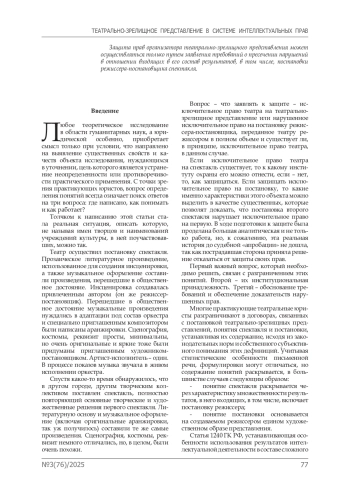 10. Иванов Н. Правовая охрана театральных постановок: современное состояние и предстоящие изменения // ИС. Авторское право и смежные права. 2017. № 10. С. 7-16