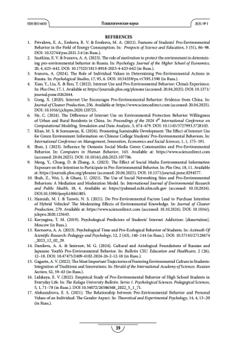 9. Meng Y., Chung D., Zhang A. The effect of social media environmental information exposure on the intention to participate in pro-environmental behavior (Влияние воздействия экологической информации в социальных сетях на намерение участвовать в проэкологическом поведении) // Plos one. 2023. Vol. 18. № 11. URL: https://journals.plos.org/plosone (дата обращения: 20.04.2025). https://doi.org/10.1371/journal.pone.0294577.