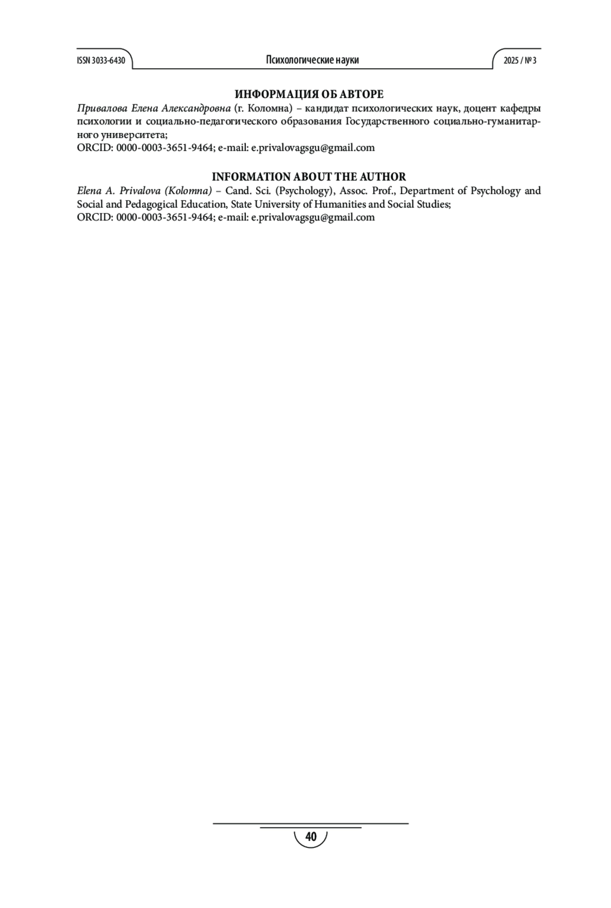 Теоретическая и/или практическая значимость. Полученные результаты могут быть учтены в процессе психологического сопровождения процесса медиасоциализации личности.