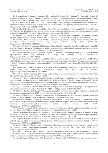 26. Nayak A.P., Shah S.D., Michael J.V., Deshpande D.A. Bitter taste receptors for asthma therapeutics // Front. Physiol. 2019. Vol.10. Article number:884. DOI: 10.3389/fphys.2019.00884