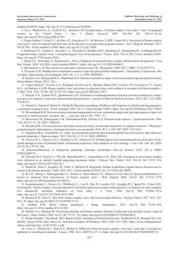 30. Lopushinsky K.M., Harabor A., Bodani J. No footprint too small: case of intrauterine herpes simplex virus infection // Case Rep. Perinat. Med. 2021. Vol.10, № 1. Article number:20210047. DOI: 10.1515/crpm-2021-0047