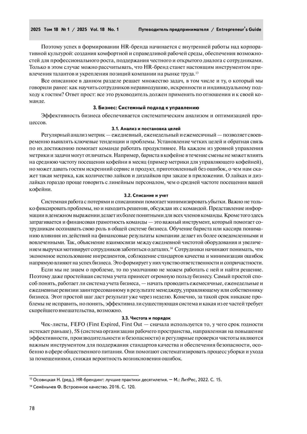 В первой части статьи анализируется важность индивидуального подхода к гостям, персонализации сервиса, обучения персонала заботе о клиентах, стандартизации процессов и работы с обратной связью. Вторая часть посвящена роли команды в успехе бизнеса: обсуждаются корпоративная культура, забота о сотрудниках, формирование HR–бренда и создание здоровой рабочей среды. Третья часть раскрывает значимость системного управления, включая анализ метрик, учет ресурсов, поддержание чистоты и порядок в бизнесе.