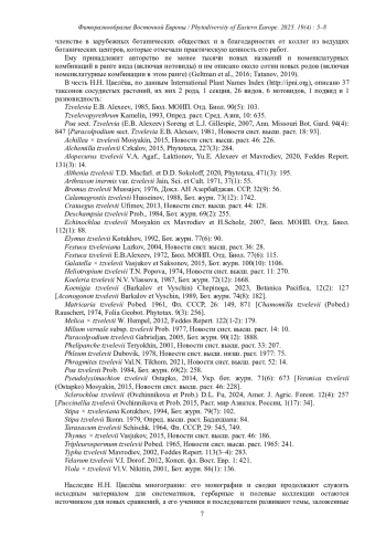 3. [Saksonov, Senator] Саксонов С., Сенатор С. 2015. К 90-летию Н.Н. Цвелёва. - Flora Foliumii (Тольяттинского отделения Русского ботанического общества). 5(140): 1-11.