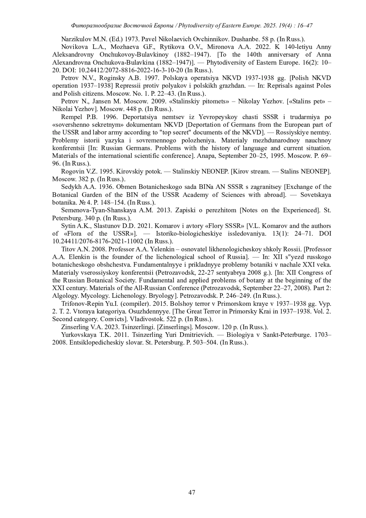33. [Sytin, Slastunov] Сытин А.К., Сластунов Д.Д. 2021. В.Л. Комаров и авторы “Флоры СССР”. - Историко-биологические исследования. 13(1): 24-71. DOI: 10.24411/2076-8176-2021-11002 EDN: BHMPCR