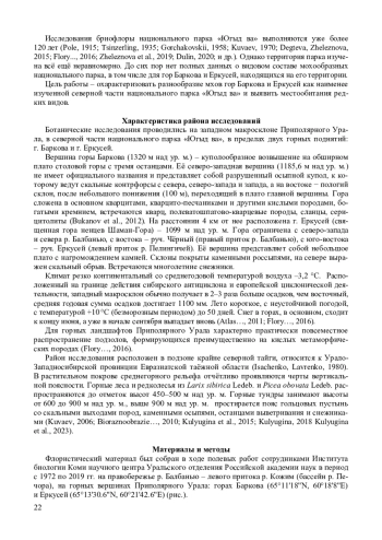7. Дулин М. В. 2020. Печёночники горы Баркова (Приполярный Урал, Республика Коми) // Разнообразие растительного мира. № 2 (5). С. 4-13. DOI: 10.22281/2686-9713-2020-2-4-13 EDN: JPENLV