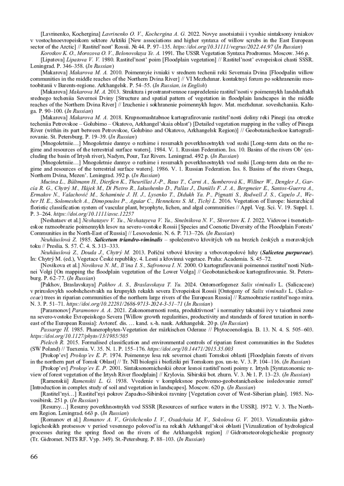 42. Шушпанникова Г.С. 1996. Характеристика сообществ ивняков реки Печоры // Бот. журн. Т. 81. № 10. С. 37-45.