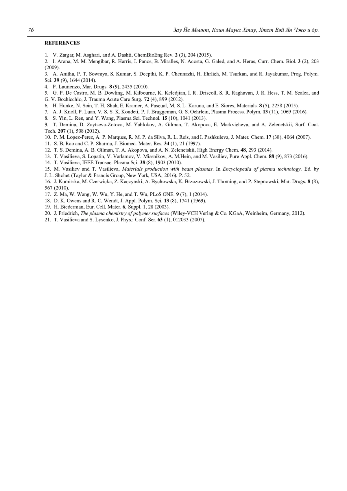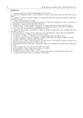 20. Friedrich J. The plasma chemistry of polymer surfaces. – Wiley-VCH Verlag & Co. KGaA, Weinheim, Germany, 2012.