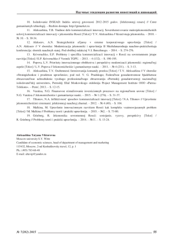14. Попова, Л.В. Приоритеты инновационного общества и перспективы модернизации экономики: региональный аспект /Л.В. Попова//Экономические и гуманитарные науки. -2011. -№ 4 (231). -С. 3-13. EDN: NTQIAN