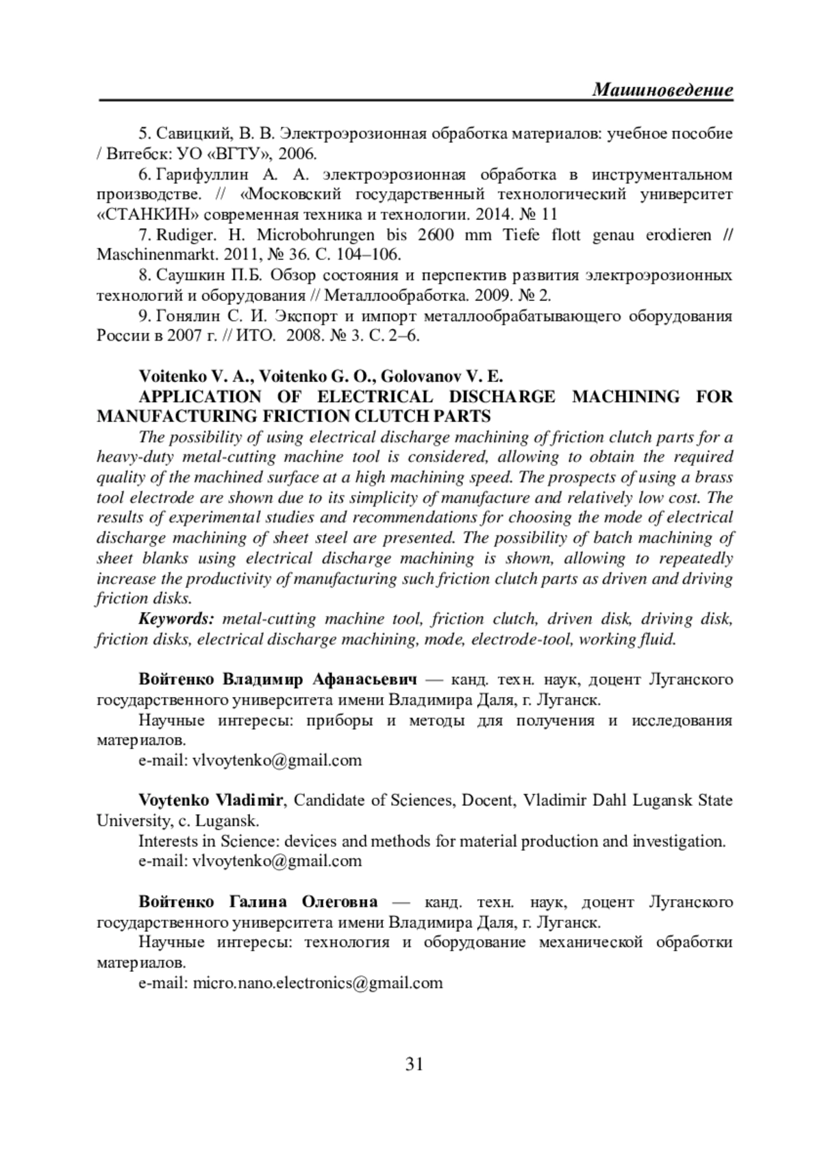 8. Саушкин П.Б. Обзор состояния и перспектив развития электроэрозионных технологий и оборудования // Металлообработка. 2009. № 2.