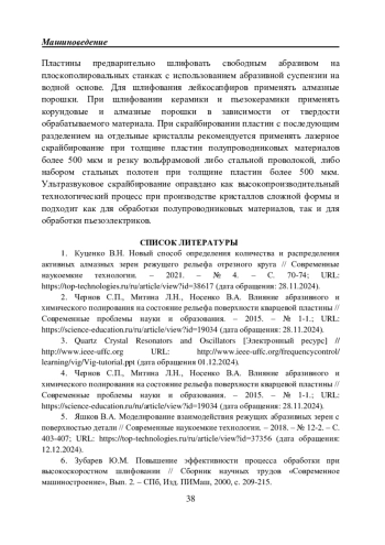 1. Куценко В.Н. Новый способ определения количества и распределения активных алмазных зерен режущего рельефа отрезного круга // Современные наукоемкие технологии. - 2021. - № 4. - С. 70-74 URL:https://toptechnologies.ru/ru/article/view?id38617(дата обращения: 28.11.2024).