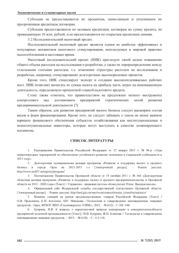 3. Постановление Правительства Орловской области от 19 октября 2011 г. № 364 «Долгосрочная областная целевая программа «Развитие и поддержка малого и среднего предпринимательства в Орловской области на 2012 - 2020 годы» [Текст] // Справочно - правовая система «Консультант Плюс: Высшая школа».