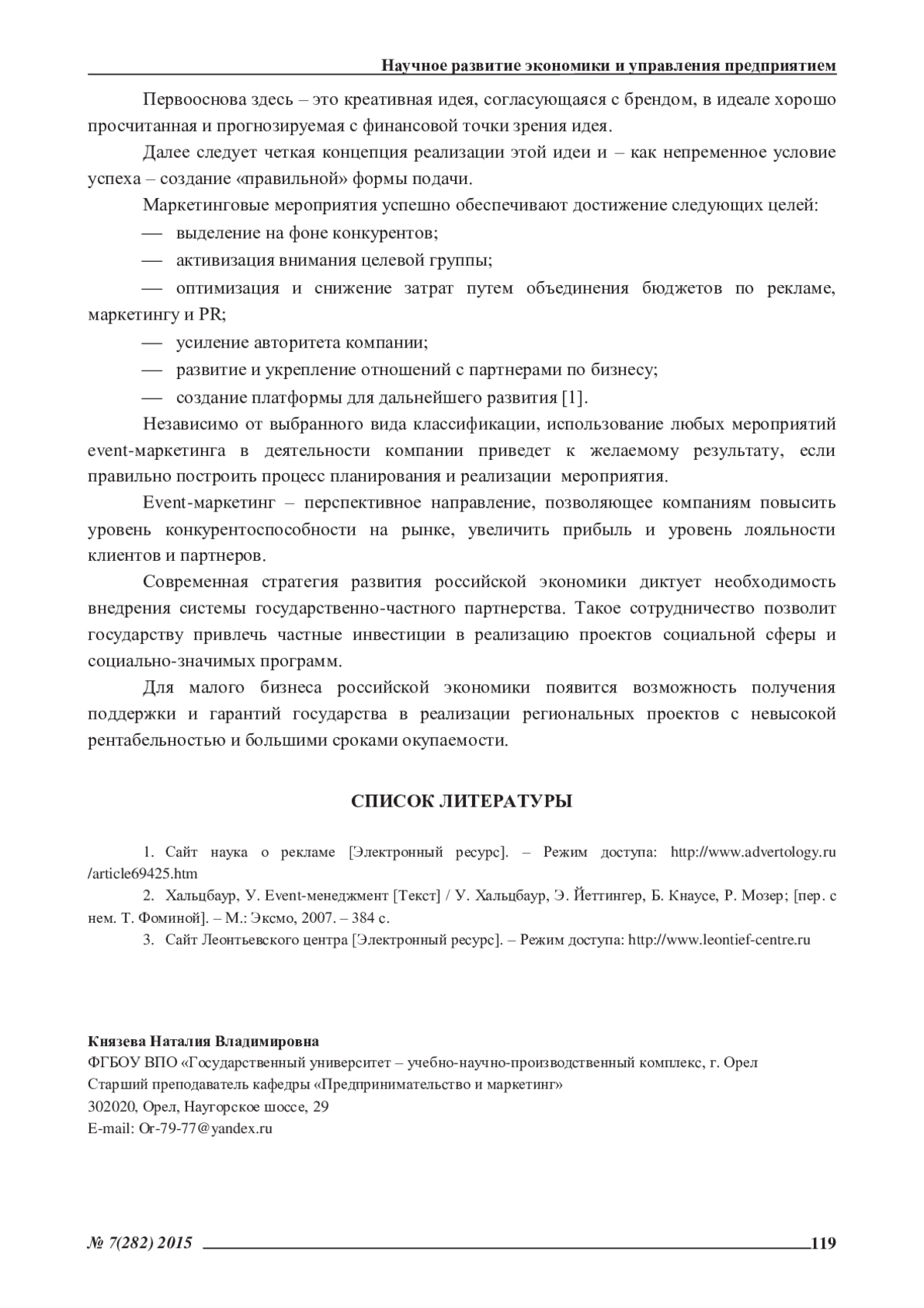2. Хальцбаур, У. Event-менеджмент [Текст] / У. Хальцбаур, Э. Йеттингер, Б. Кнаусе, Р. Мозер; [пер. с нем. Т. Фоминой]. - М.: Эксмо, 2007. - 384 с.