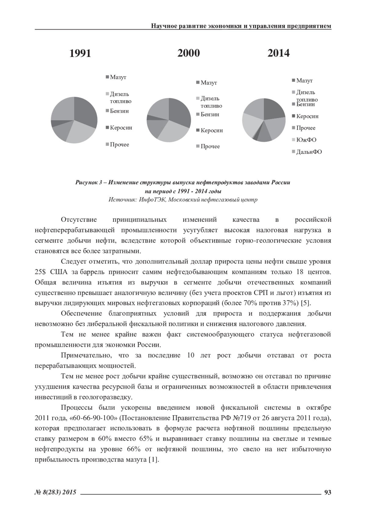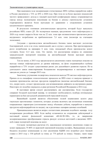 Статья: РОССИЙСКАЯ НЕФТЕПЕРЕРАБАТЫВАЮЩАЯ ПРОМЫШЛЕННОСТЬ В СОВРЕМЕННЫХ УСЛОВИЯХ (2015)