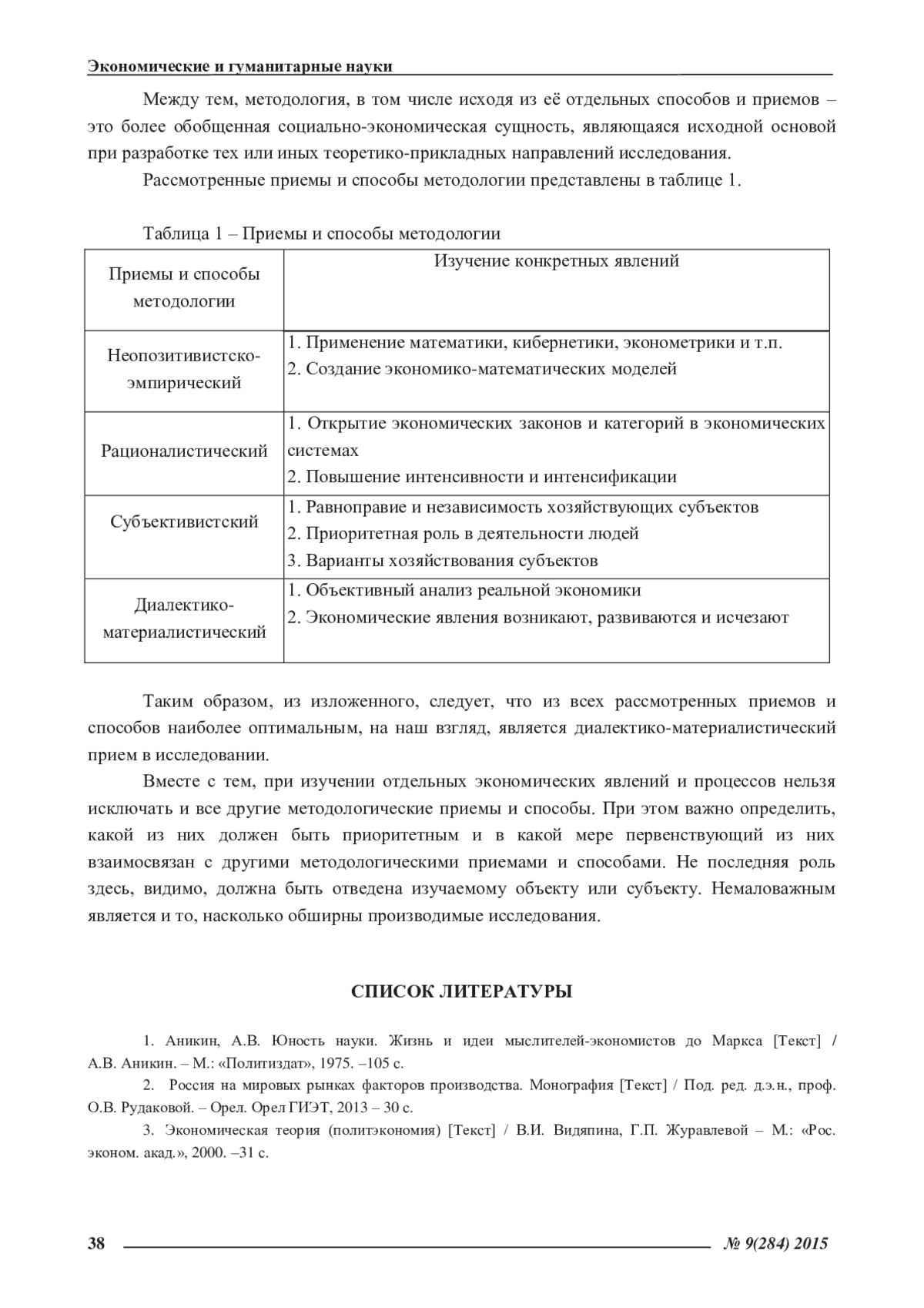Теоретико-прикладные исследования, проводимые учеными и практиками в различных областях экономических специальностей, не отличаются, как показывает практика, обоснованной однозначностью. Это и понятно, так, каждый из субъектов, занимающийся исследованиями, располагает различным уровнем знаний, умений, навыков и возможностей. Тем не менее, используя опыт прошлого и настоящего все они, и каждый в отдельности, в своей исследовательской работе приходят к каким-то конкретным способам, методам и приемам, имеющим определенную идентичность. Проявляется это, в частности в том, что авторы формулируют в соответствии в той или иной экономической специальностью конкретные теоретические и прикладного характера разработки. Они аргументируются более обосновано, если в их очевидной мере просматривается методология