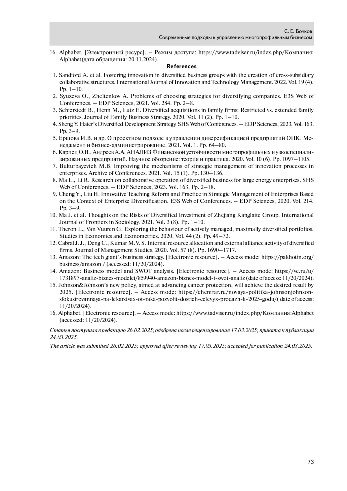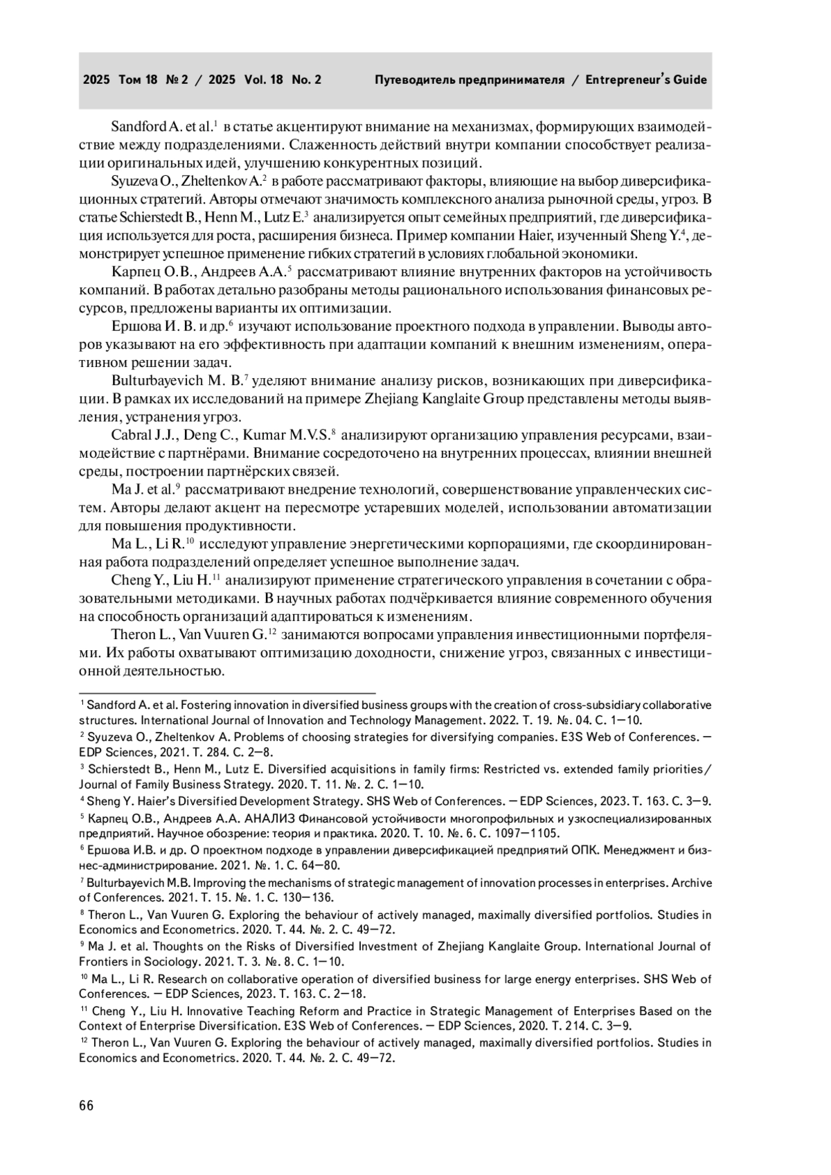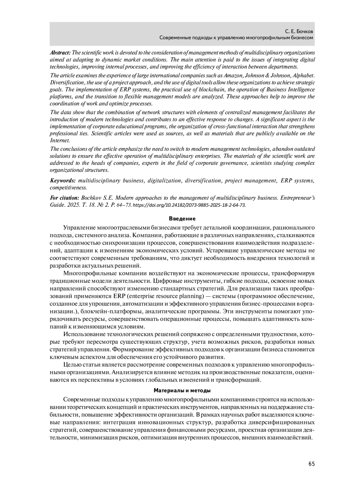 БОЧКОВ С. Е. СОВРЕМЕННЫЕ ПОДХОДЫ К УПРАВЛЕНИЮ МНОГОПРОФИЛЬНЫМ БИЗНЕСОМ // РОССИЙСКАЯ АКАДЕМИЯ ПРЕДПРИНИМАТЕЛЬСТВА. 2025. Т. 18, № 2
