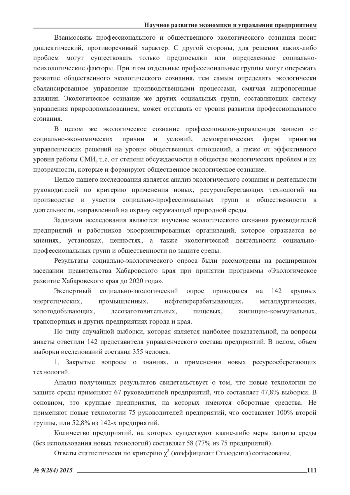 В настоящее время проблемы взаимосвязи экологического сознания руководителей предприятий, общественности и эффективного управления являются недостаточно изученными. В статье проанализирован социально-экологический опрос управленцев, экологов и представителей природоохранных организаций. Внесены предложения по активизации общественной экологической деятельности в Хабаровском крае