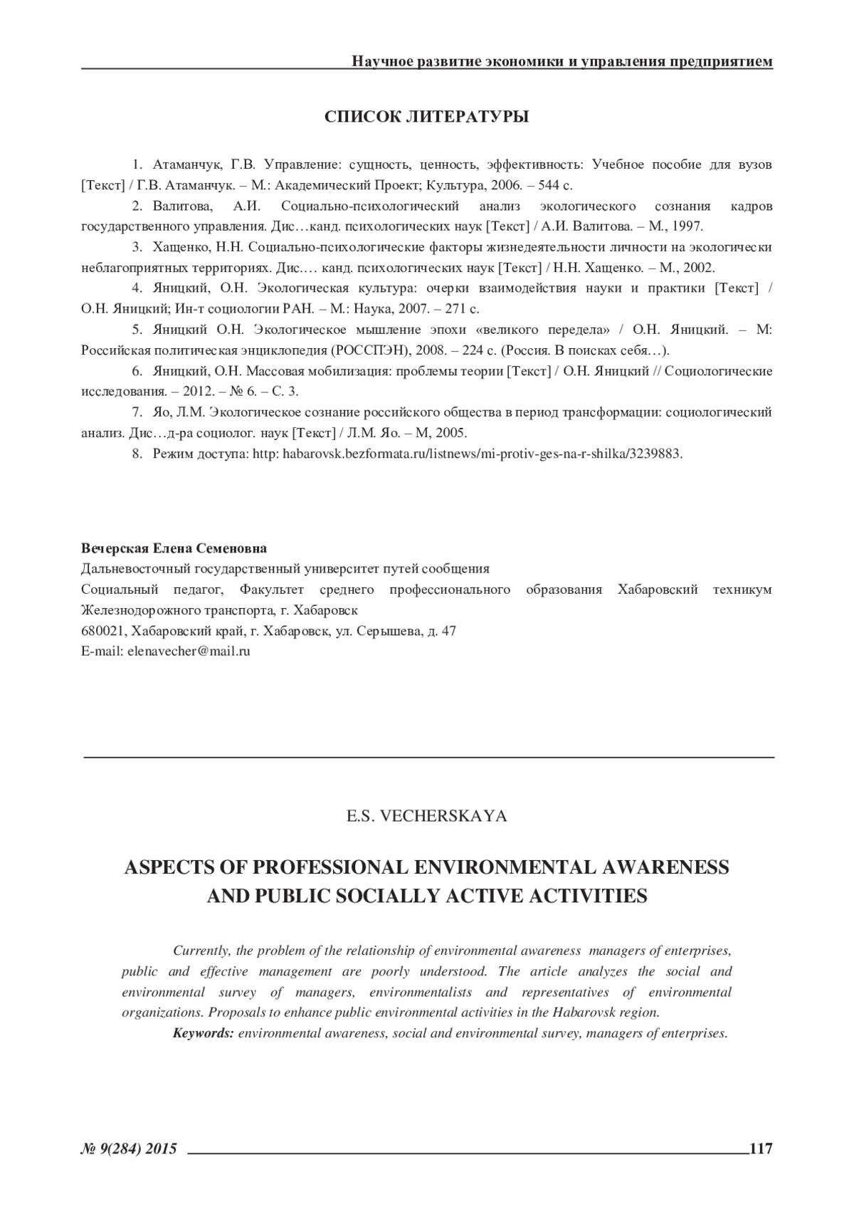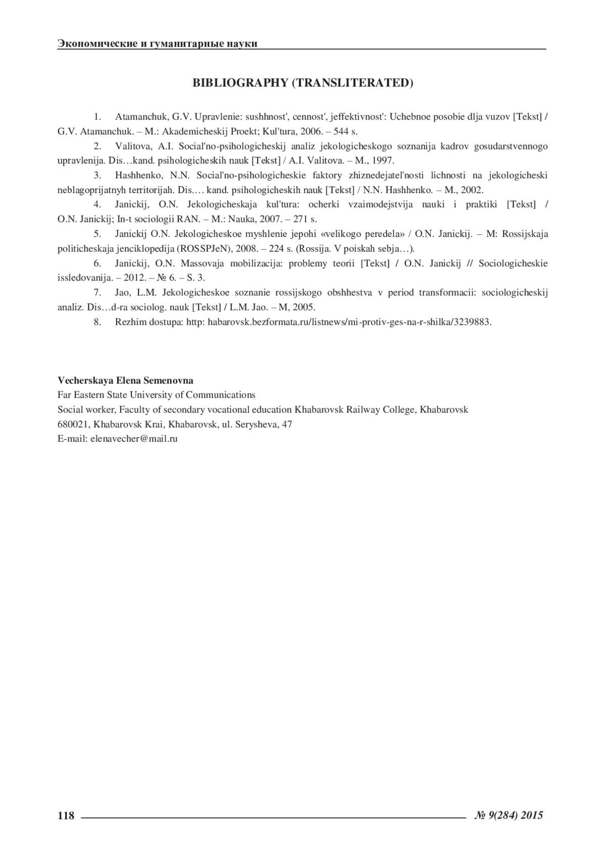 3. Хащенко, Н.Н. Социально-психологические факторы жизнедеятельности личности на экологически неблагоприятных территориях. Дис.… канд. психологических наук [Текст] / Н.Н. Хащенко. - М., 2002. EDN: NMBJYP