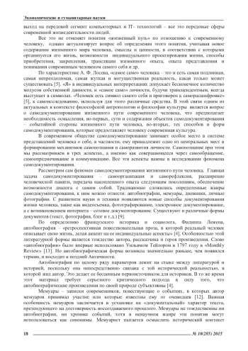 Статья: ФЕНОМЕН САМОДОКУМЕНТИРОВАНИЯ В КОНТЕКСТЕ ИССЛЕДОВАНИЯ ЖИЗНЕННОГО ПУТИ ЧЕЛОВЕКА (2015)