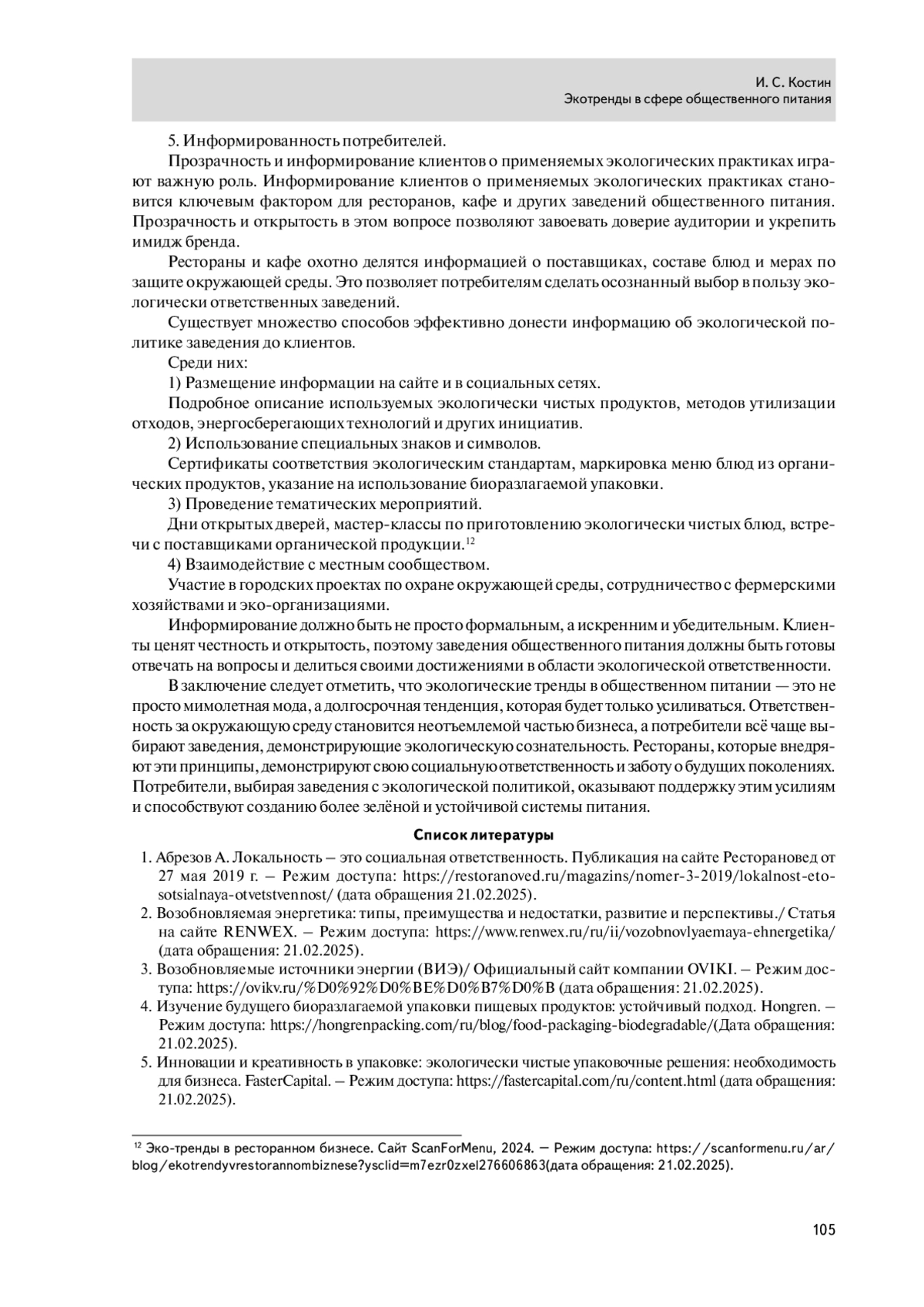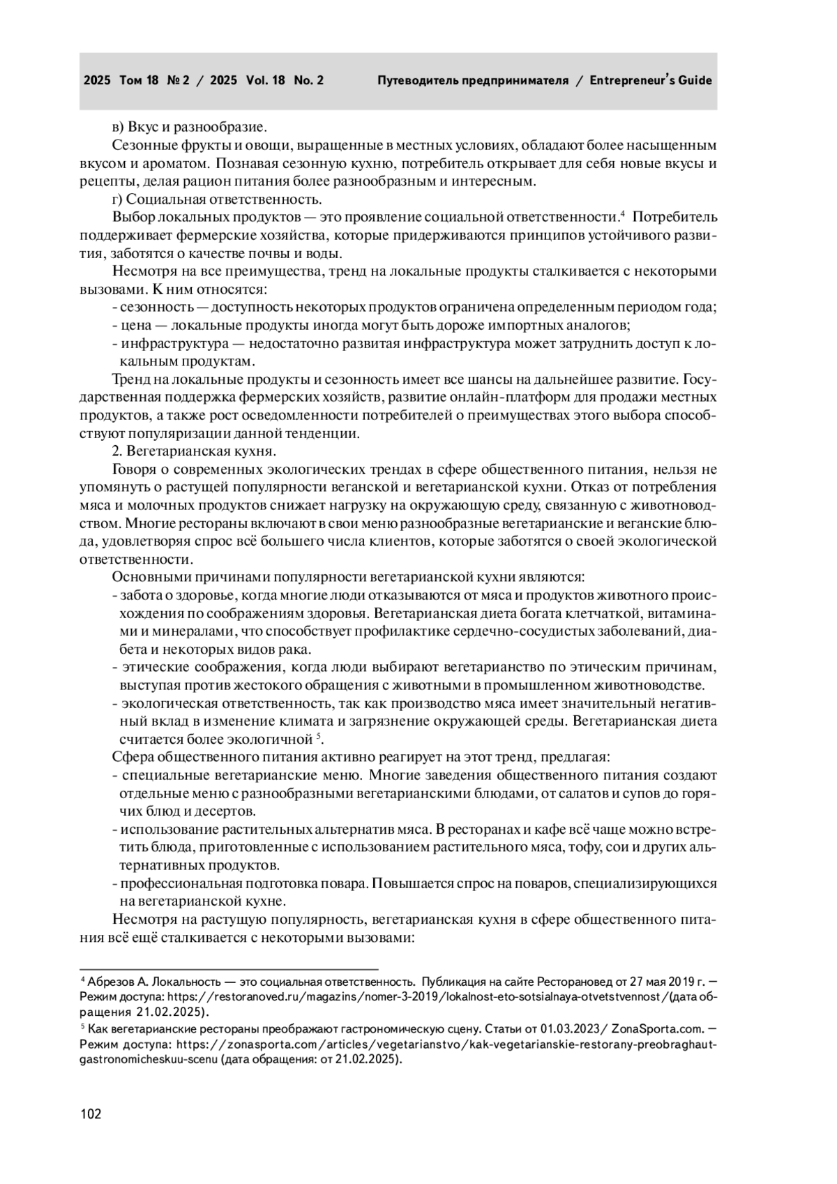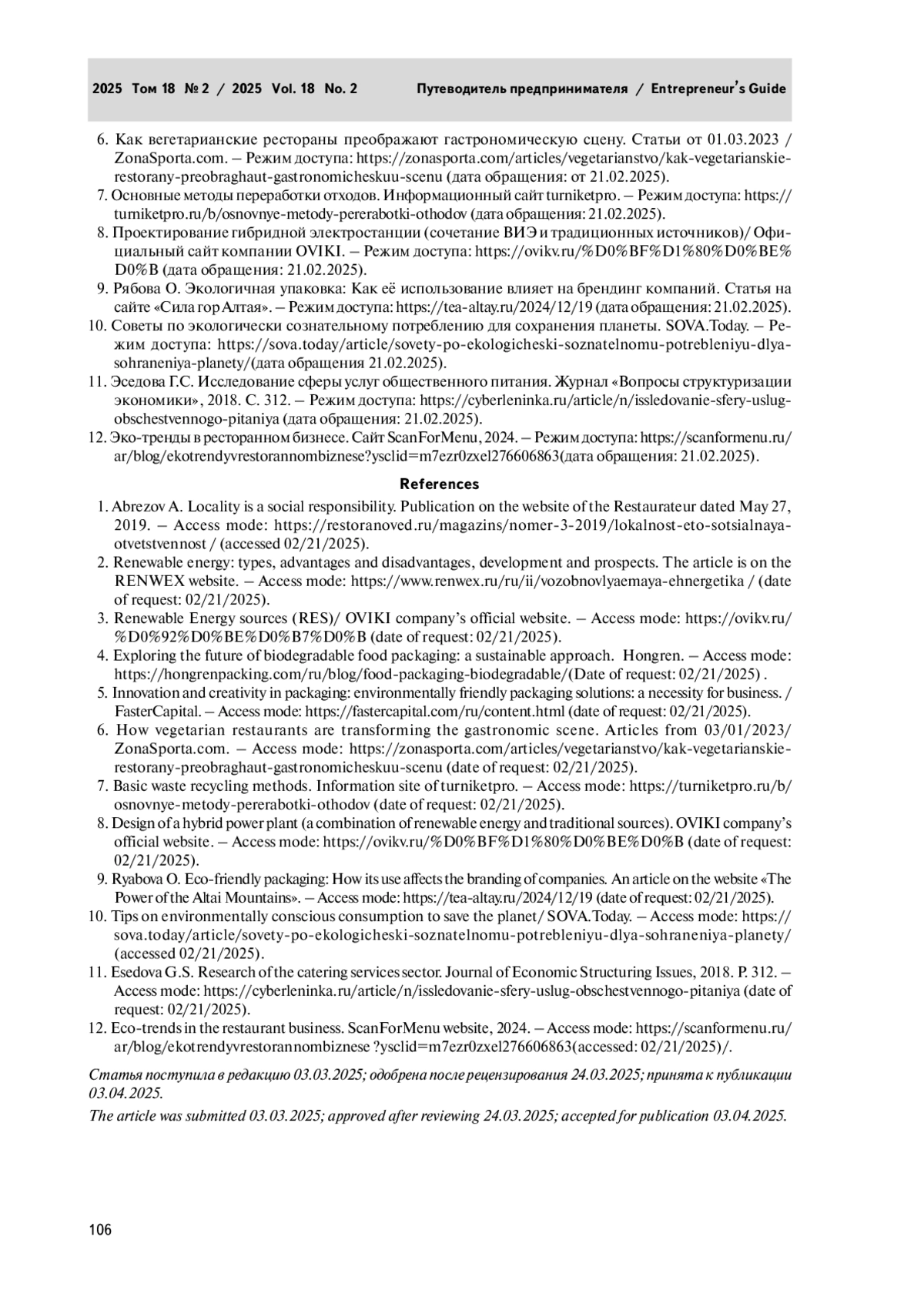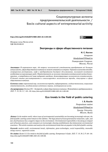 КОСТИН И. С. ЭКОТРЕНДЫ В СФЕРЕ ОБЩЕСТВЕННОГО ПИТАНИЯ // РОССИЙСКАЯ АКАДЕМИЯ ПРЕДПРИНИМАТЕЛЬСТВА. 2025. Т. 18, № 2