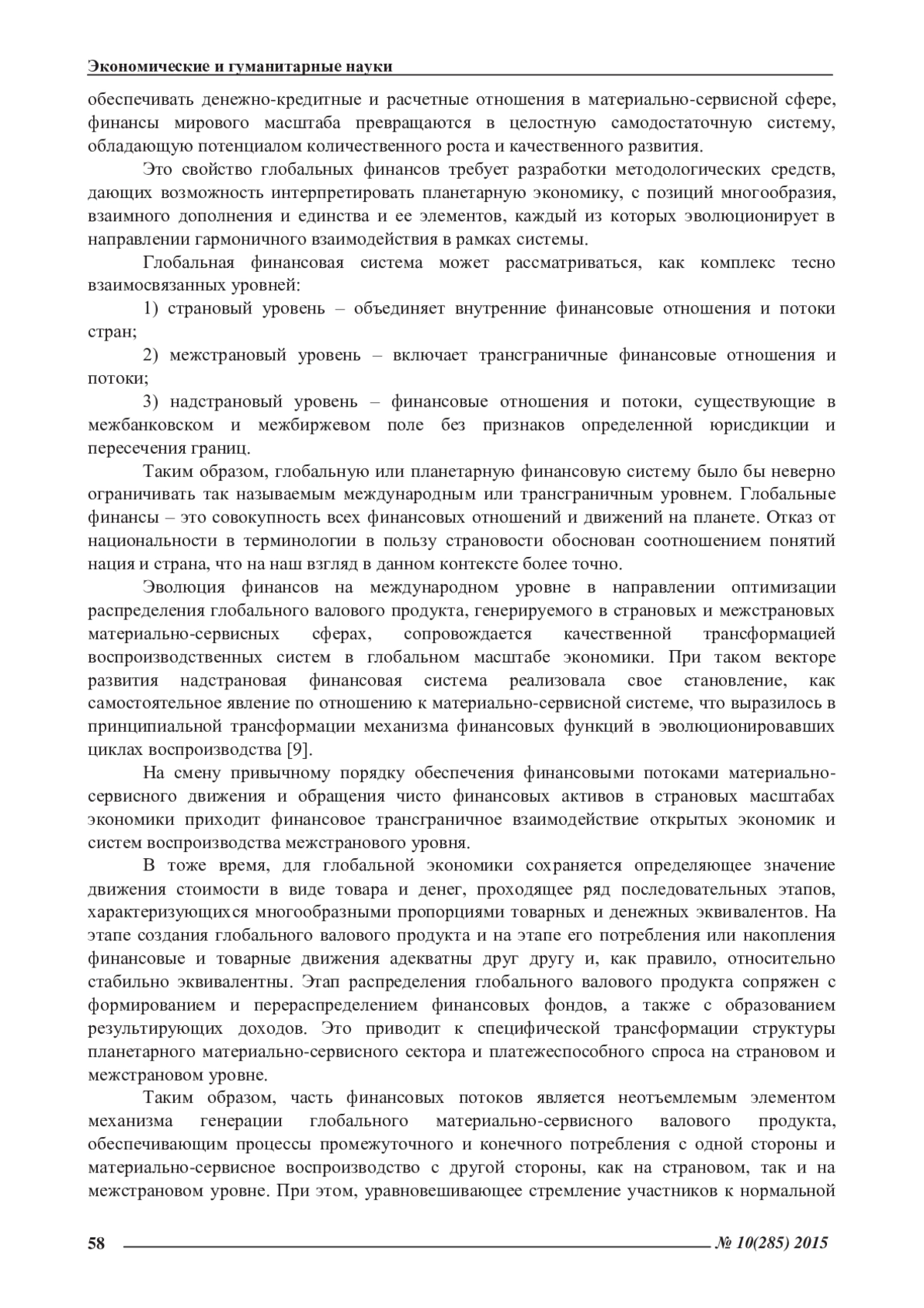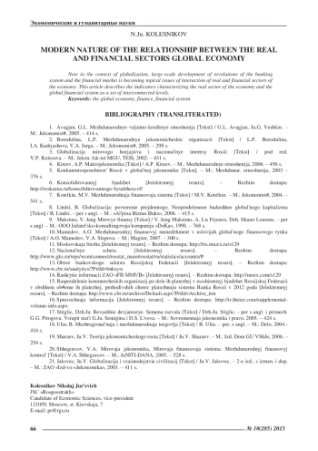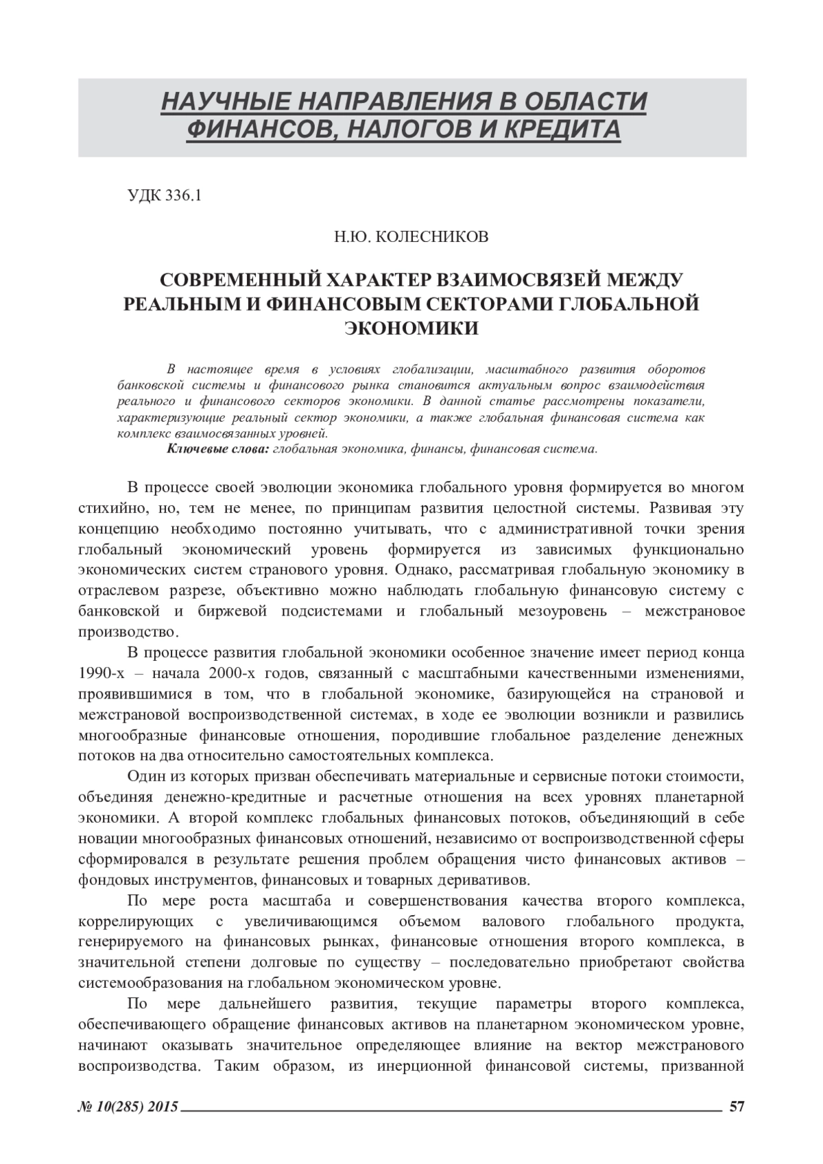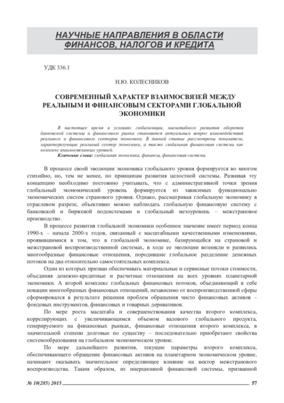 КОЛЕСНИКОВ Н. Ю. СОВРЕМЕННЫЙ ХАРАКТЕР ВЗАИМОСВЯЗЕЙ МЕЖДУ РЕАЛЬНЫМ И ФИНАНСОВЫМ СЕКТОРАМИ ГЛОБАЛЬНОЙ ЭКОНОМИКИ // ЭКОНОМИЧЕСКИЕ И ГУМАНИТАРНЫЕ НАУКИ. 2015. № 10 (285)