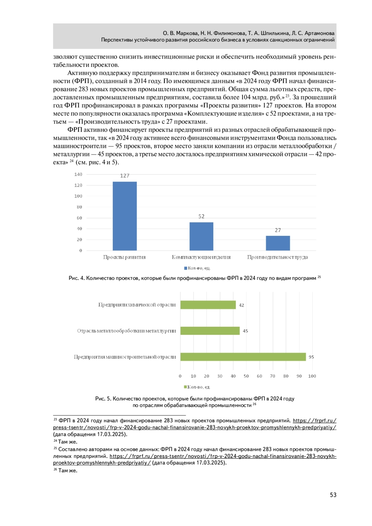 11. Шпилькина Т.А., Филимонова Н.Н., Артамонова Л.С., Шишова И.А. Тенденции развития отраслей и секторов экономики России в условиях санкций, импортозамещения и концепции устойчивого развития. Ученые записки Российской Академии предпринимательства. 2022. Т. 21, № 3. С. 68-76.