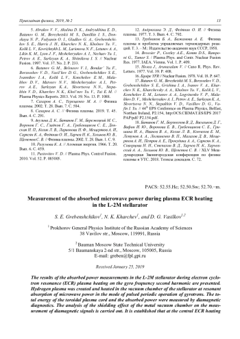 9. Акулина Д. К., Батанов Г. М., Бережецкий М. С., Воронов Г. С., Гладков Г. А., Гребенщиков С. Е., Донская Н. П., Колик Л. В., Ларионова Н. Ф., Мещеряков А. И., Сарксян К. А., Федянин О. И., Харчев Н. К., Хольнов Ю. В., Щепетов С. В. // Физика плазмы. 2002. Т. 28. Вып. 1. С. 9.