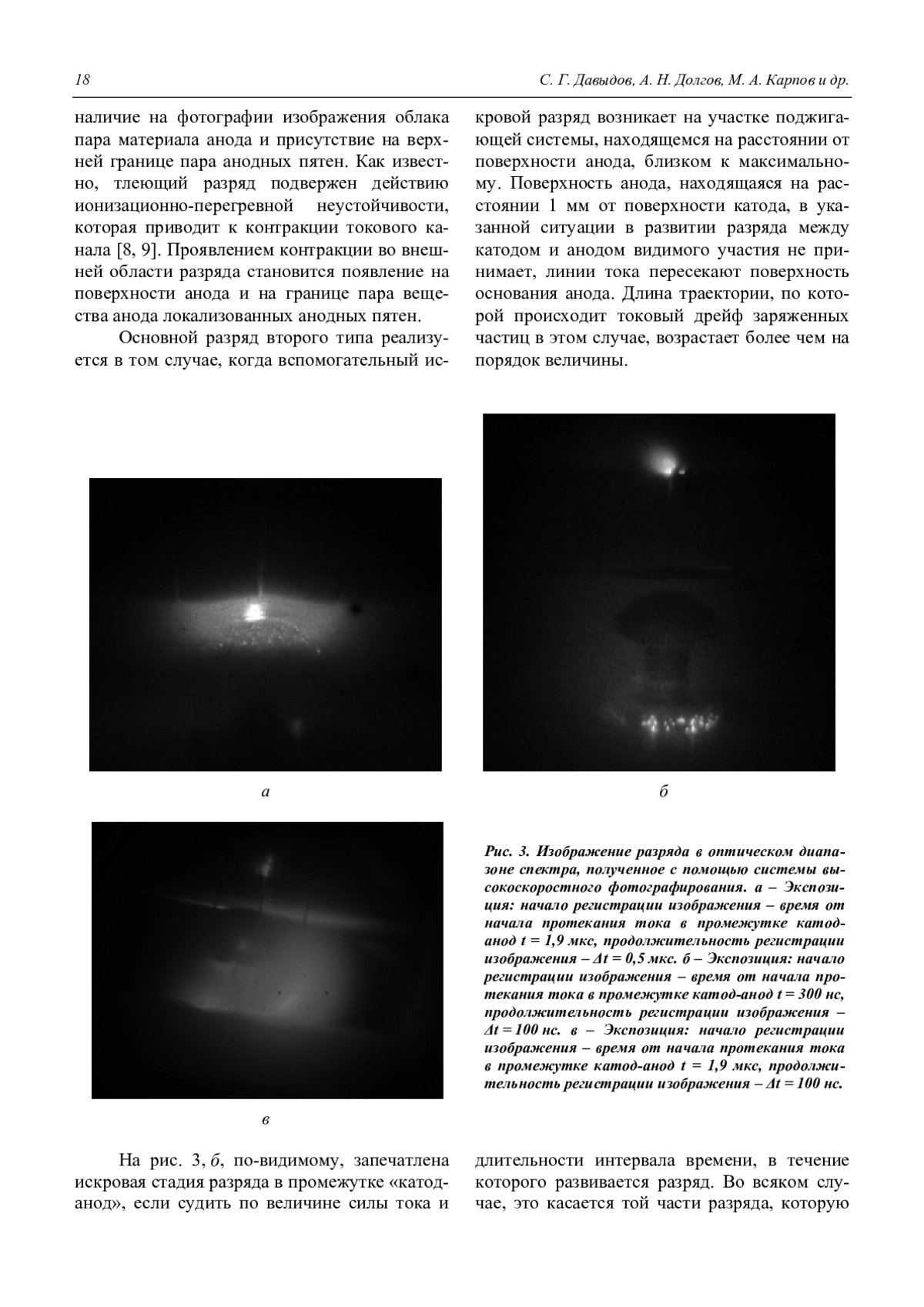 Давыдов С. Г., Долгов А. Н., Карпов М. А., Корнеев А. В., Никишин Д. В., Пшеничный А. А., Якубов Р. Х. Высокоскоростная регистрация изображений вакуумно-дугового разряда в оптическом диапазоне спектра 15