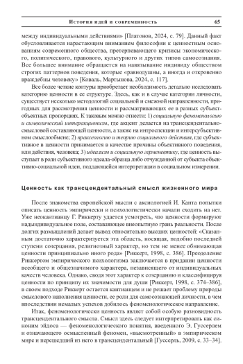 Исследование аксиологических оснований в социальной философии в современном контексте приобретает все большую значимость. Неслучайно в нормативно-этической теории все чаще отмечается взаимосвязь индивидуального и коллективного: «Разработка коллективного действия ведется путем концептуализации различного рода связей между индивидуальными действиями» [Платонов, 2024, с. 79].