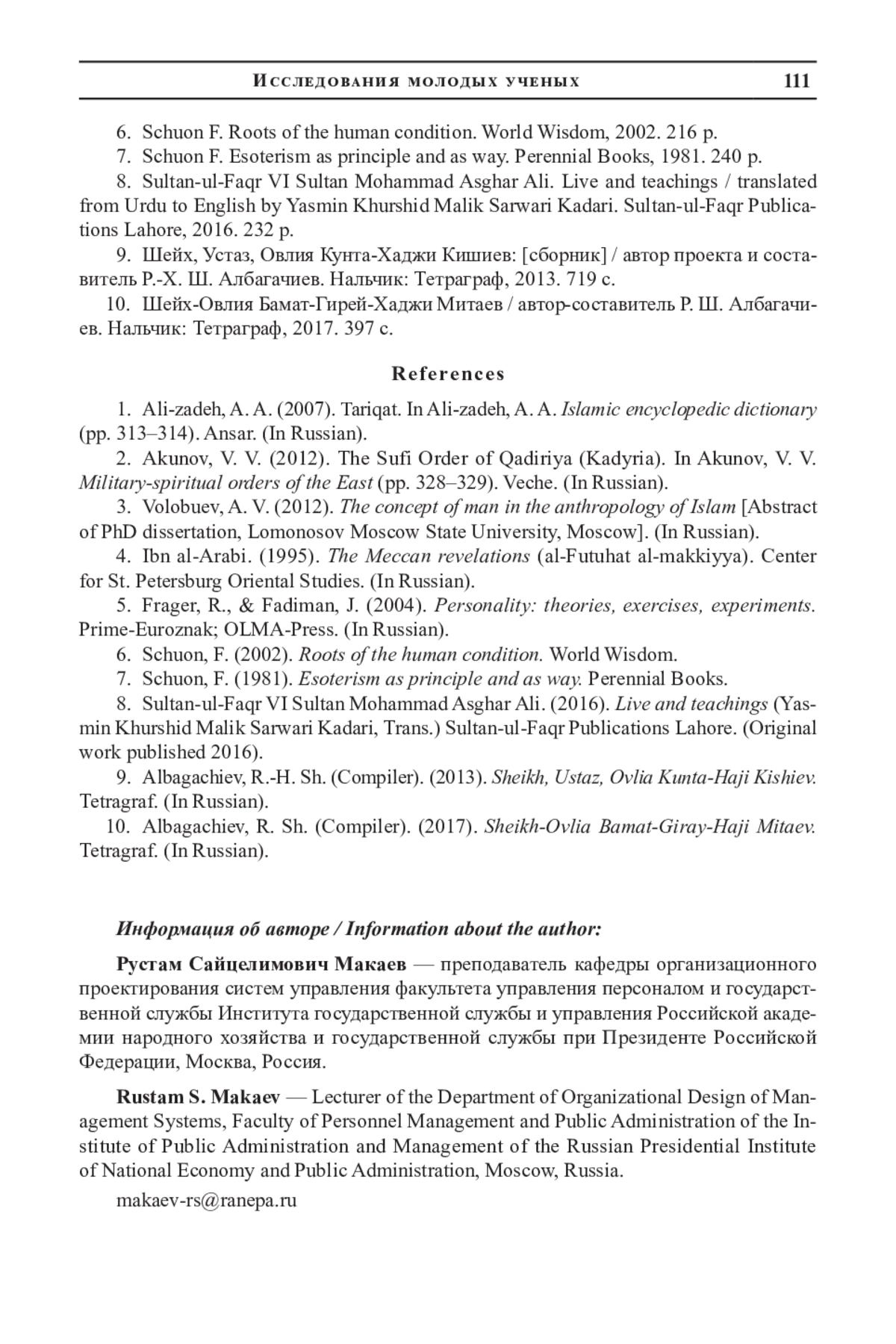 3. Волобуев А. В. Концепт человека в антропологии ислама: автореф. дис.. канд. филос. наук. М., 2012. 26 с. EDN: QHWAQD