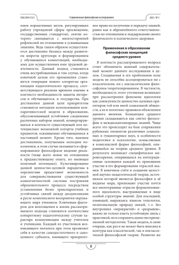 ЧАЩИН Е. В. ОСОБЕННОСТИ РЕАЛИЗАЦИИ ФИЛОСОФСКИХ КОНЦЕПЦИЙ СРЕДНЕГО УРОВНЯ В ПЕДАГОГИЧЕСКОМ ПРОЦЕССЕ // СОВРЕМЕННЫЕ ФИЛОСОФСКИЕ ИССЛЕДОВАНИЯ. 2025. № 3