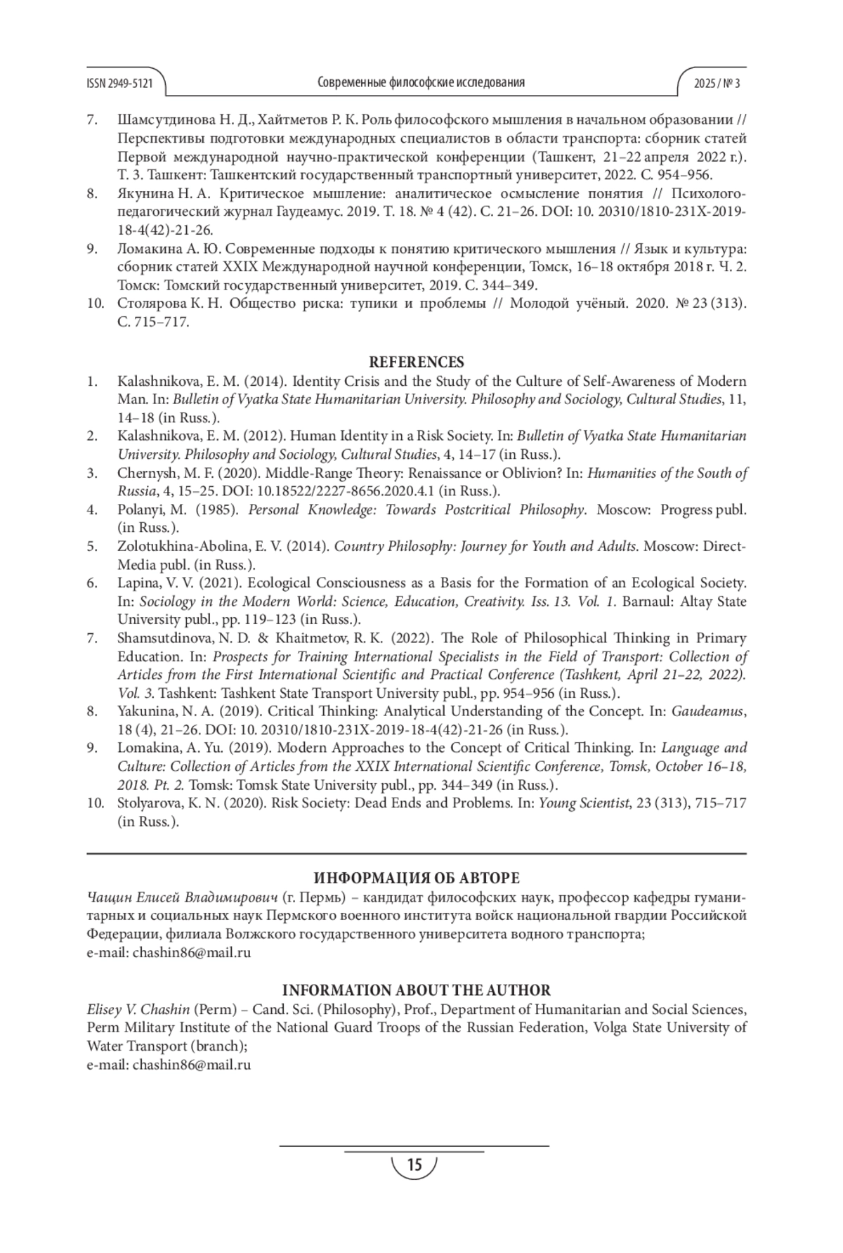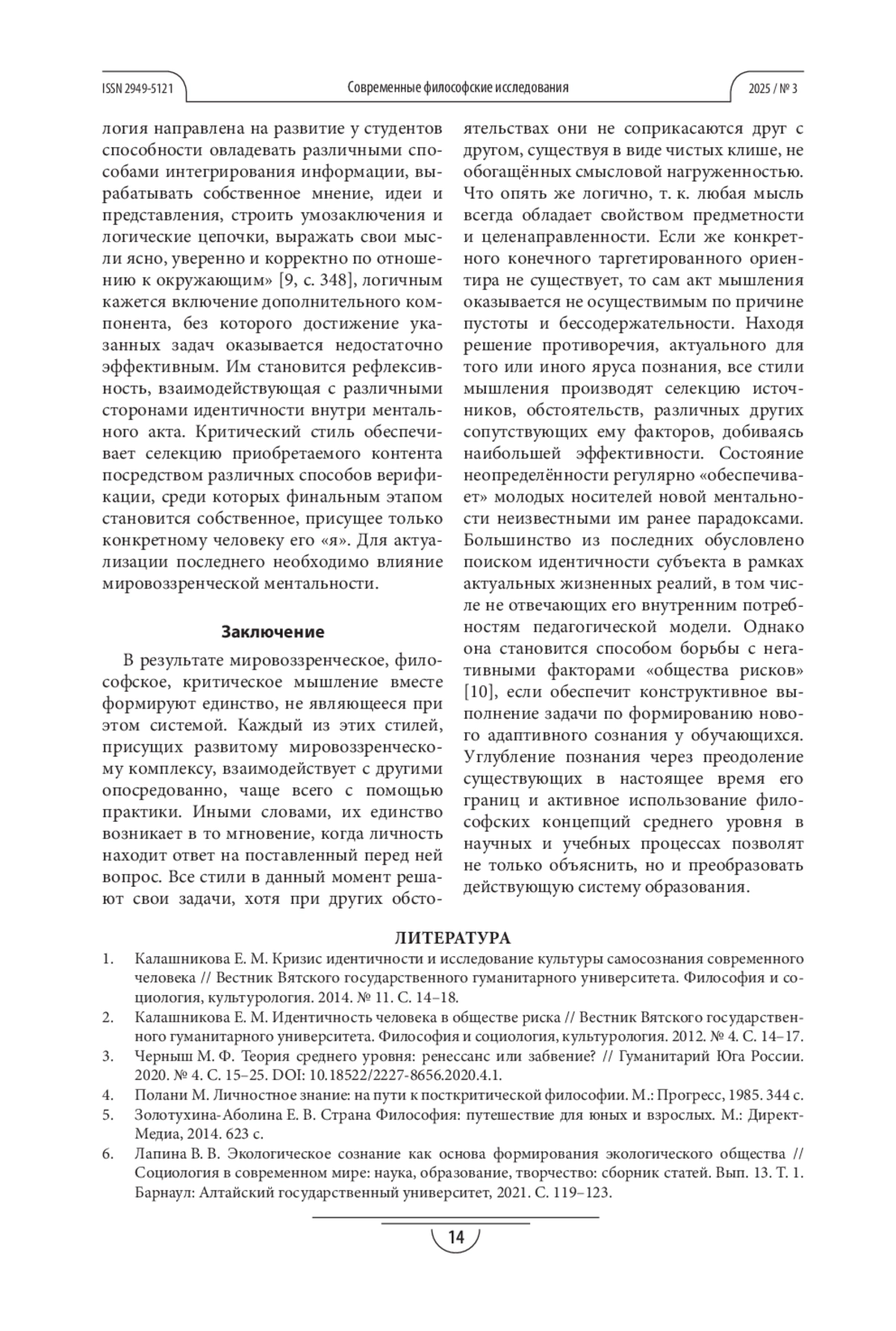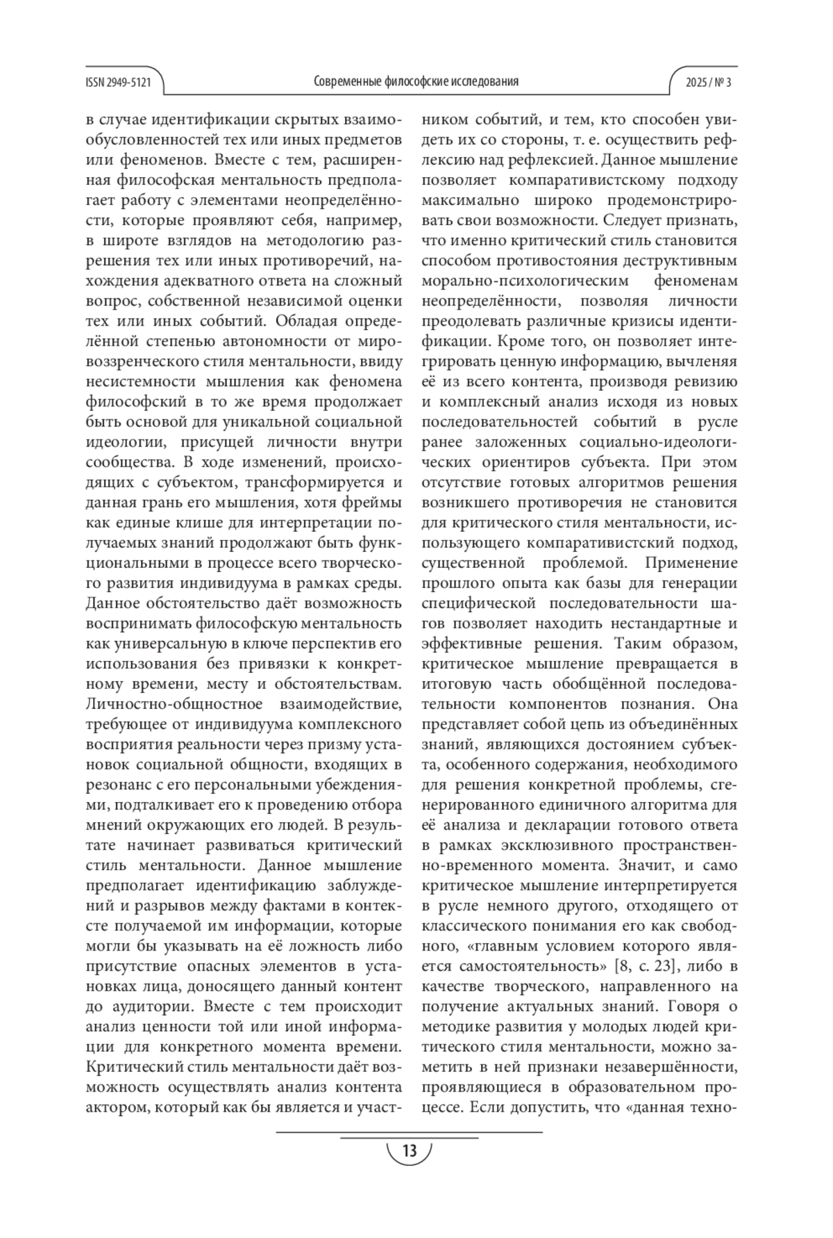 Журнал: СОВРЕМЕННЫЕ ФИЛОСОФСКИЕ ИССЛЕДОВАНИЯ