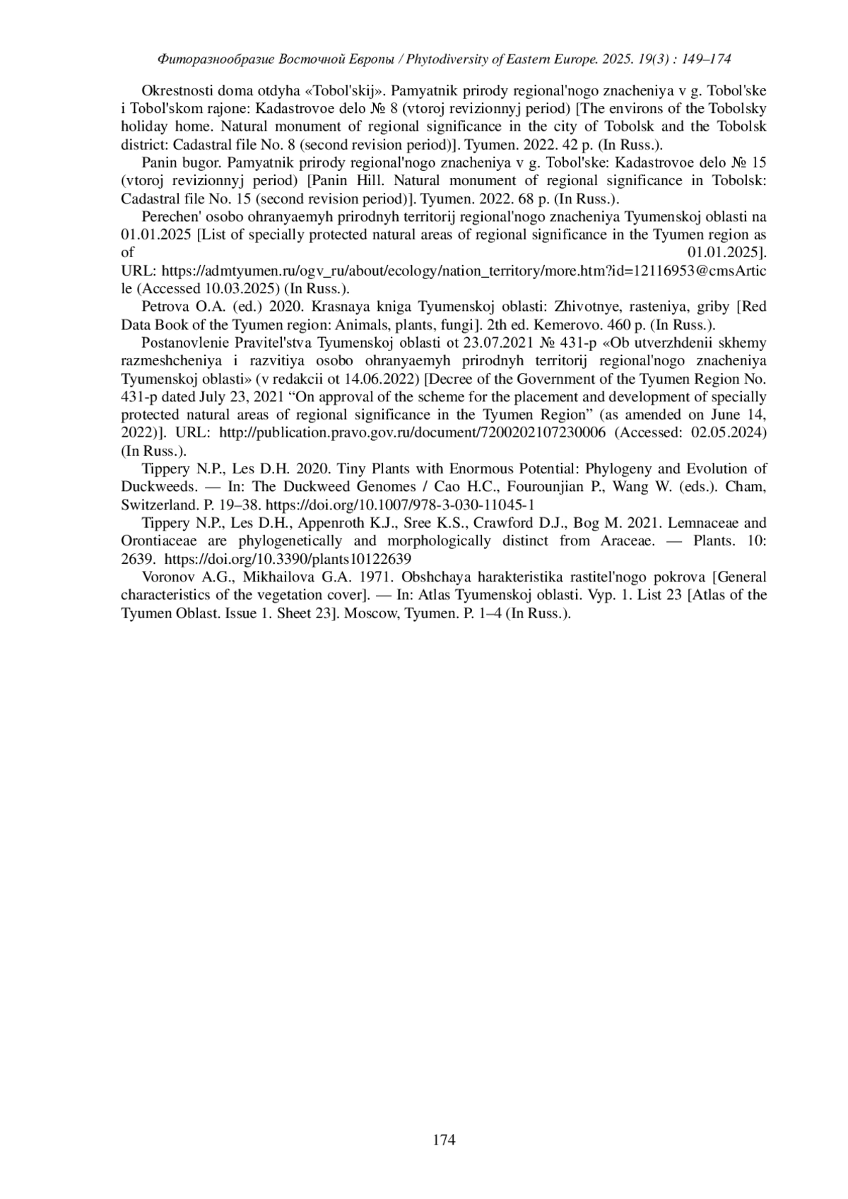 16. [Perechen’ …] Перечень особо охраняемых природных территорий регионального значения Тюменской области на 01.01.2025. URL: https://admtyumen.ru/ogv_ru/about/ecology/nation_territory/more.htm?id=12116953@cmsArticle (Accessed 10.03.2025).