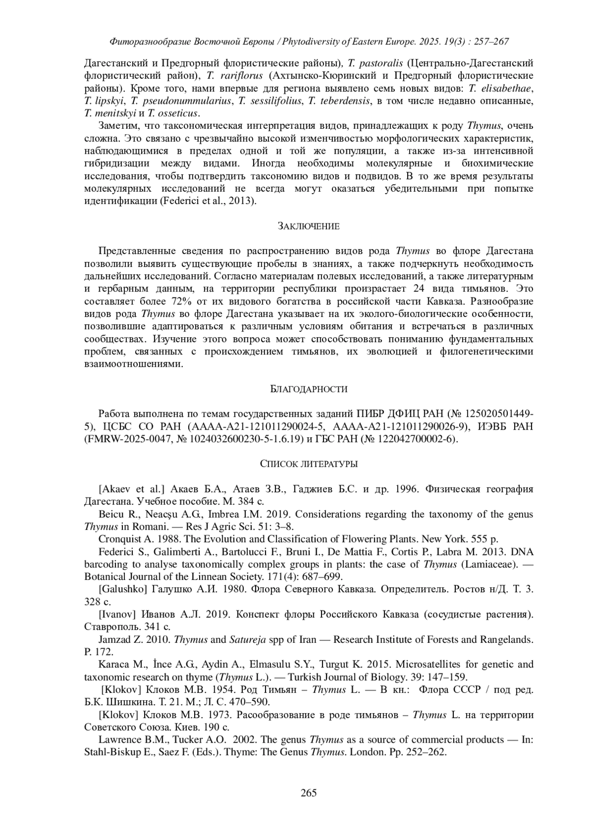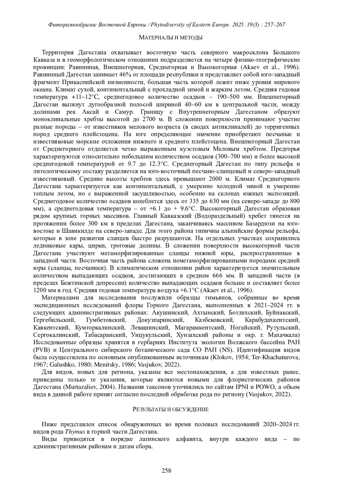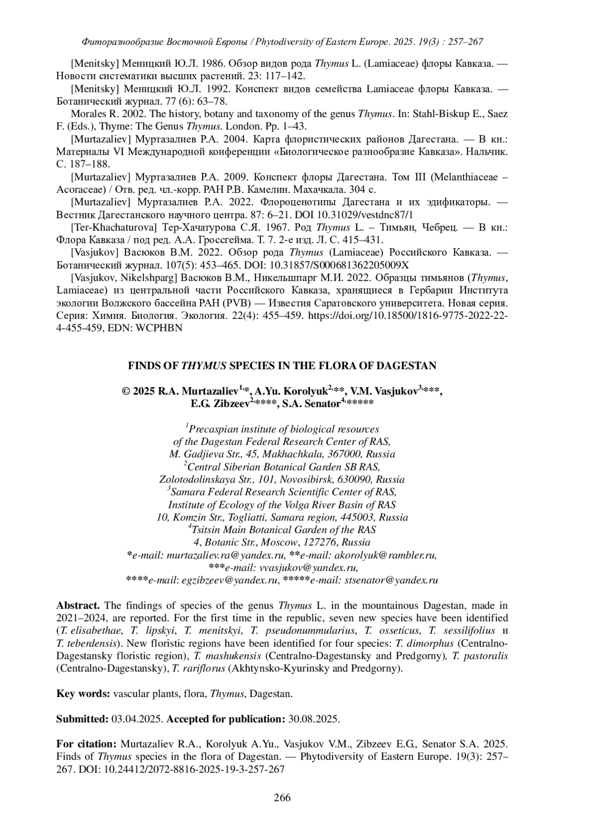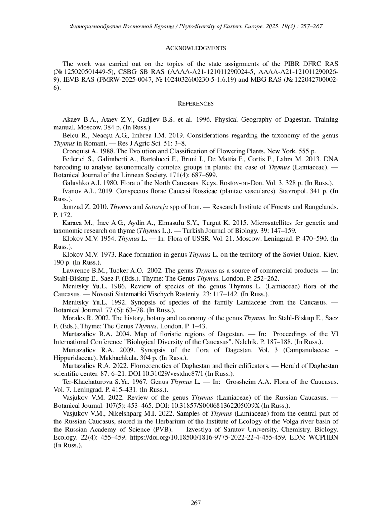 19. [Vasjukov] Васюков В.М. 2022. Обзор рода Thymus (Lamiaceae) Российского Кавказа. - Ботанический журнал. 107(5): 453-465. DOI: 10.31857/S000681362205009X EDN: MOGBSR