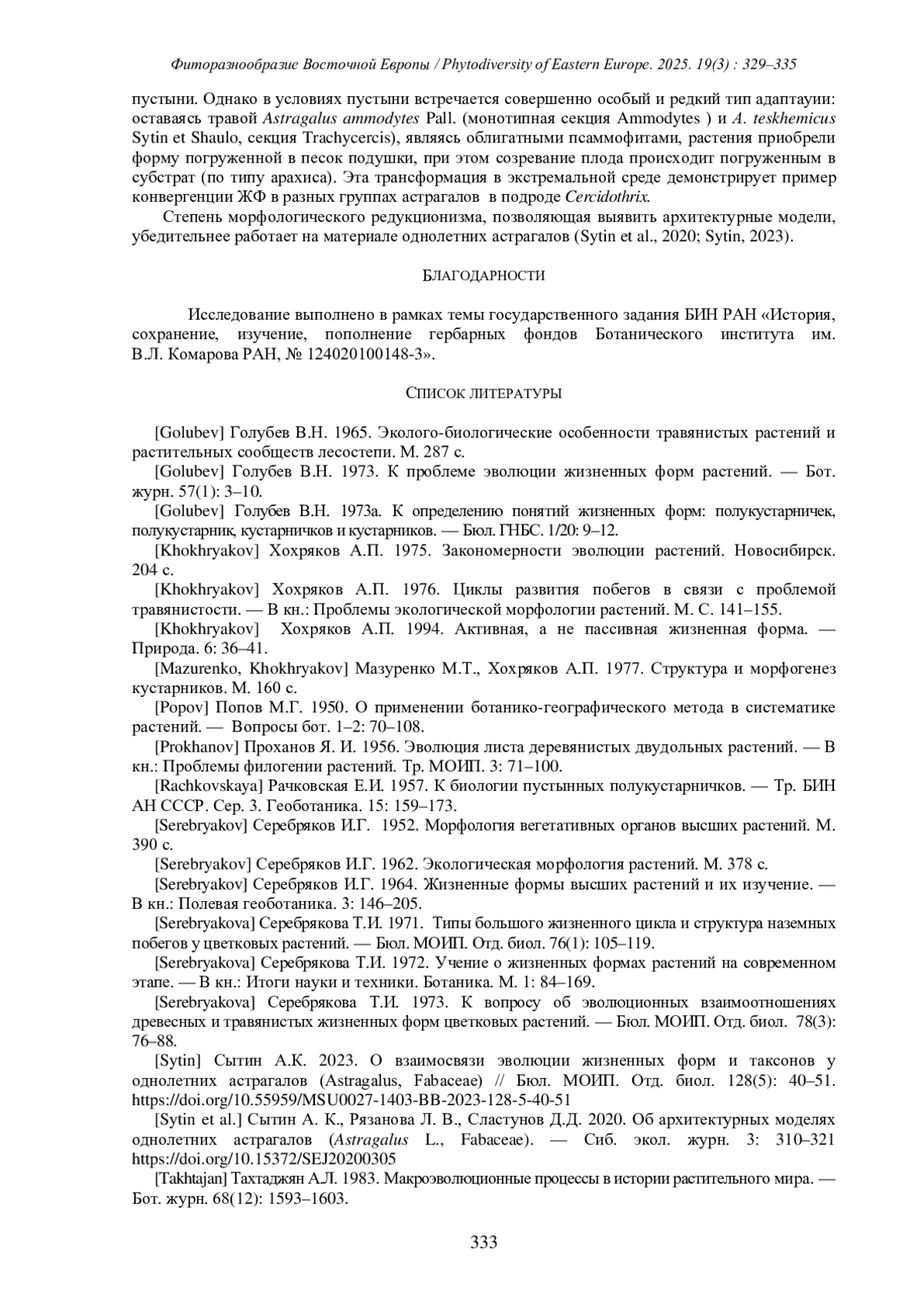17. [Sytin] Сытин А.К. 2023. О взаимосвязи эволюции жизненных форм и таксонов у однолетних астрагалов (Astragalus, Fabaceae) // Бюл. МОИП. Отд. биол. 128(5): 40-51. DOI: 10.55959/MSU0027-1403-BB-2023-128-5-40-51