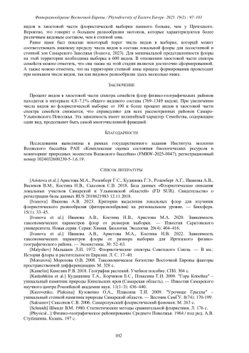 2. [Ivanova] Иванова А.В. 2023. Критерии выделения локальных флор для изучения флористического разнообразия (фиторазнообразия) на региональном уровне. - Биосфера. 15(1): 33-45. EDN: JTXKEM