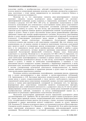 4. Арабян, К.К. Проблемы оценки аудиторского риска [Текст] / К.К. Арабян // Аудит и финансовый анализ. - М.: Издательство «ДСМ Пресс». - 2011. - № 2. - С. 184-186. EDN: NYCFUP