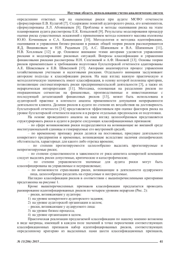 6. Василенко, А.А. Аудиторский риск: развитие понятия и методов оценки [Текст] / А.А. Василенко, Е.С. Фисакова // Учет и статистика. - Ростов н/Д.: РГЭУ. - 2010. - № 18. - С. 64-71. EDN: NDUOMR