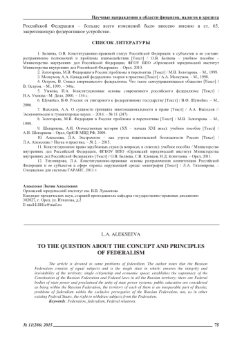 5. Умнова, И.А. Конституционные основы современного российского федерализма [Текст] / И.А. Умнова - М: Дело, 2000. - 134 с. EDN: TKKGBX