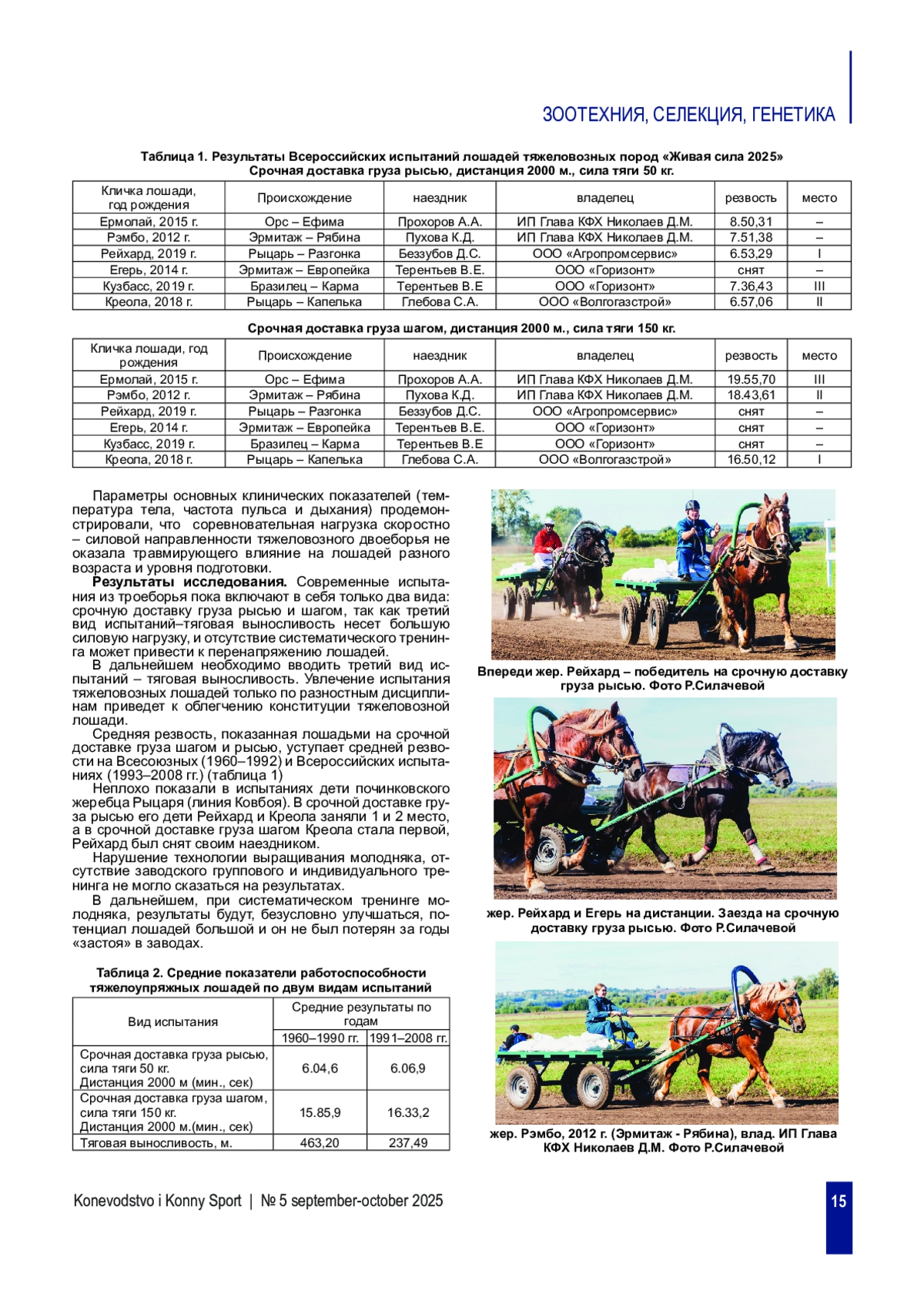 Статья: АНАЛИЗ РЕЗУЛЬТАТОВ ВСЕРОССИЙСКИХ ИСПЫТАНИЙ ЛОШАДЕЙ ТЯЖЕЛОВОЗНЫХ ПОРОД 2025 ГОДА (2025)