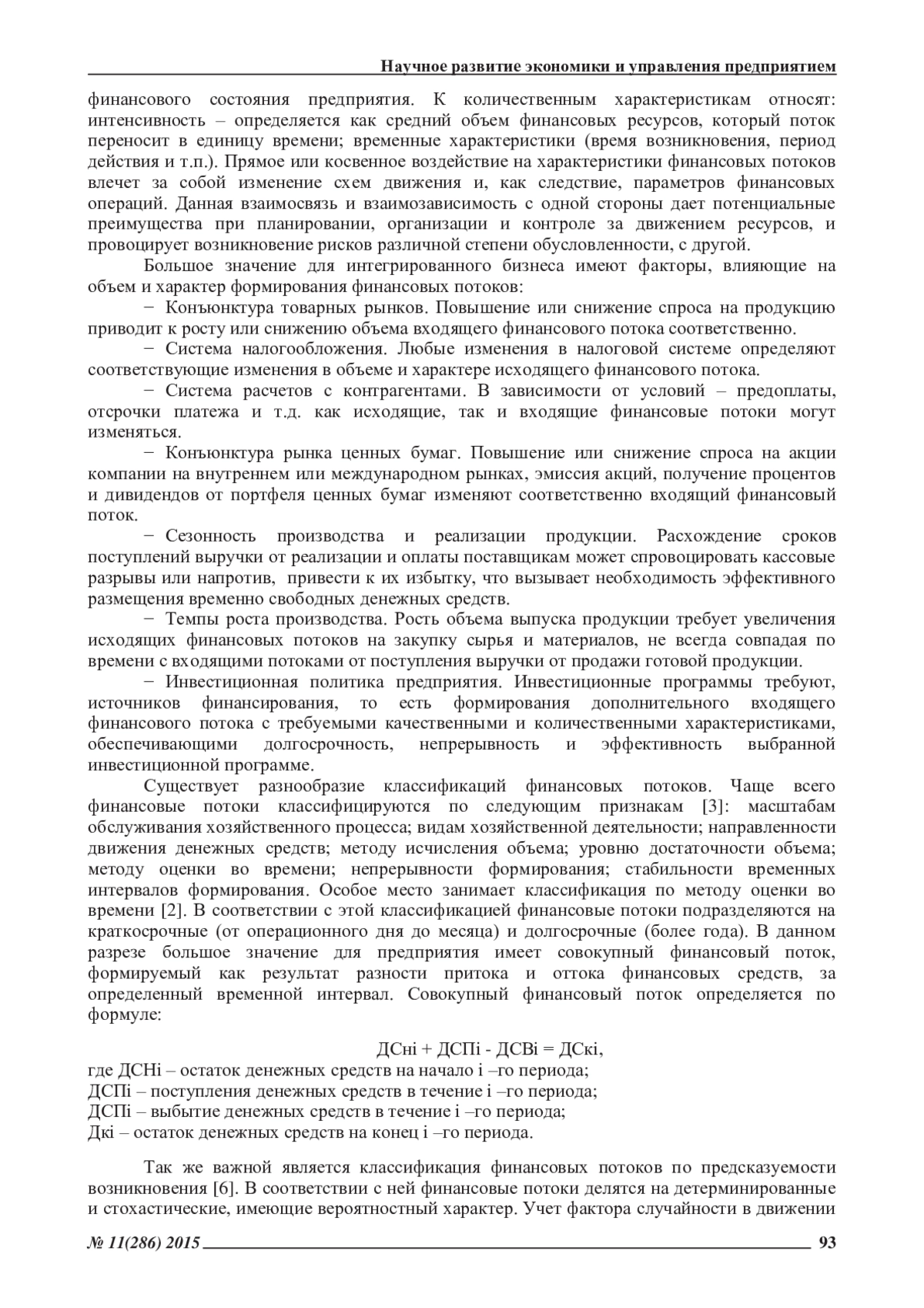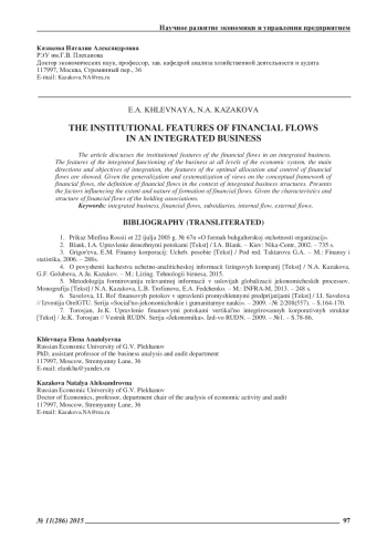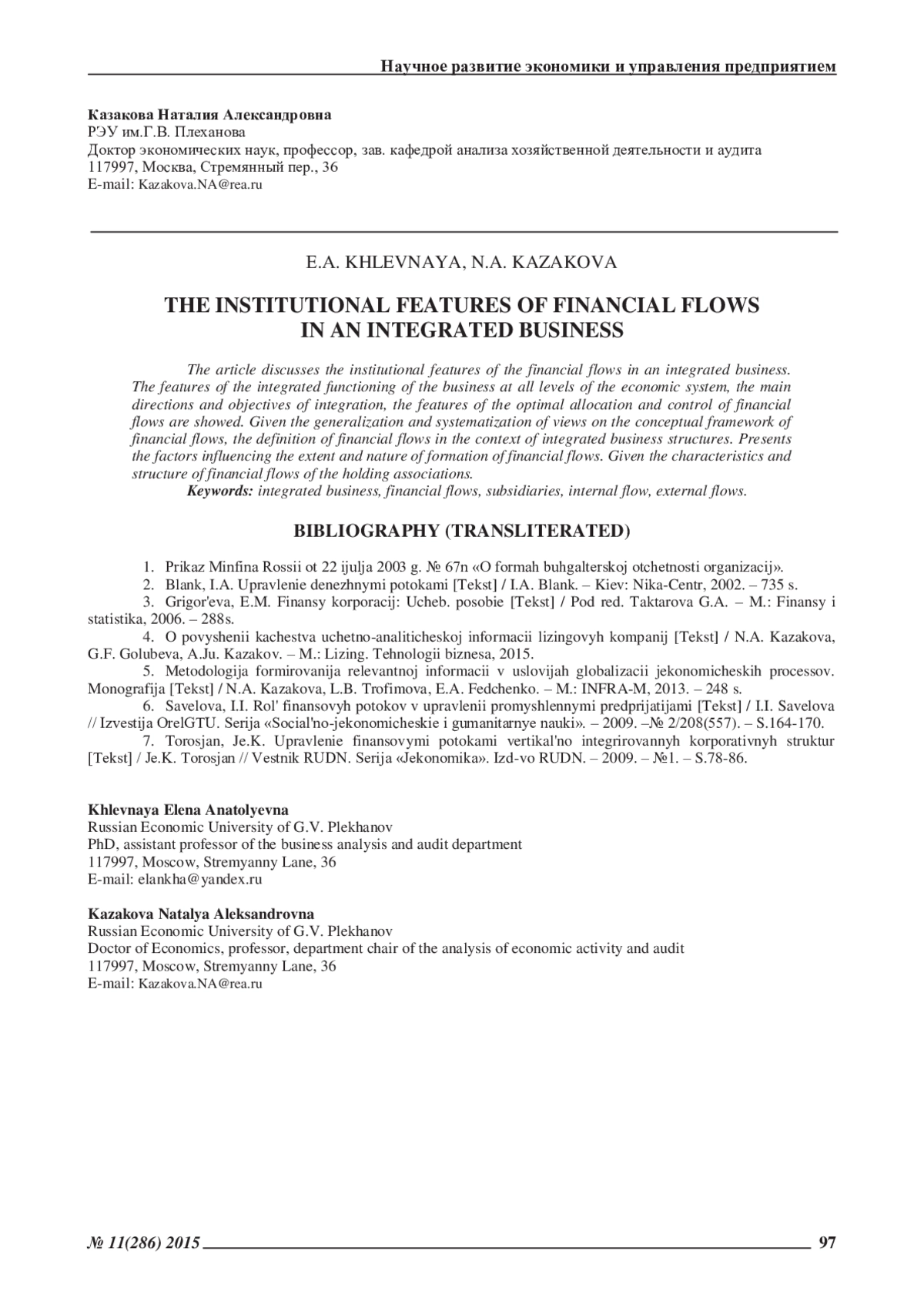 Статья: ИНСТИТУЦИОНАЛЬНЫЕ ОСОБЕННОСТИ ФИНАНСОВЫХ ПОТОКОВ В ИНТЕГРИРОВАННОМ БИЗНЕСЕ (2015)