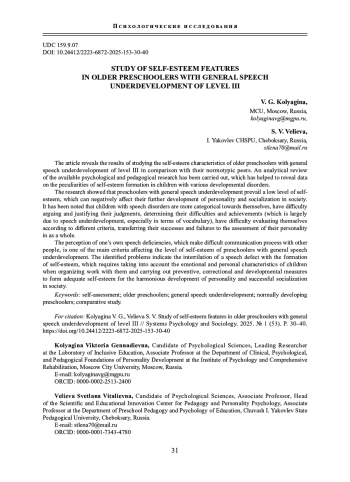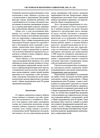 4. Горбунова Е. В., Хаидов С. К. Особенности формирования самооценки у старших дошкольников с общим недоразвитием речи // Акмеология. 2018. № 1 (65). С. 83-86. EDN: YSEDJG