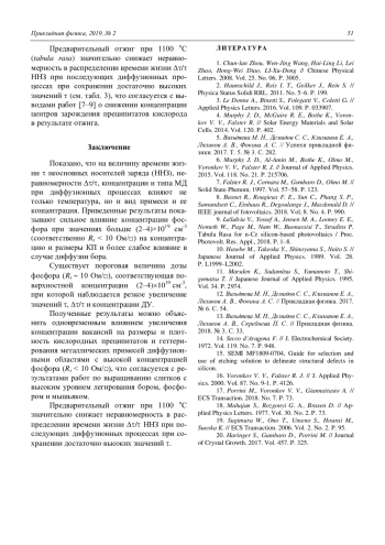 4. Murphy J. D., McGuire R. E., Bothe K., Voron- kov V. V., Falster R. // Solar Energy Materials and Solar Cells. 2014. Vol. 120. P. 402.