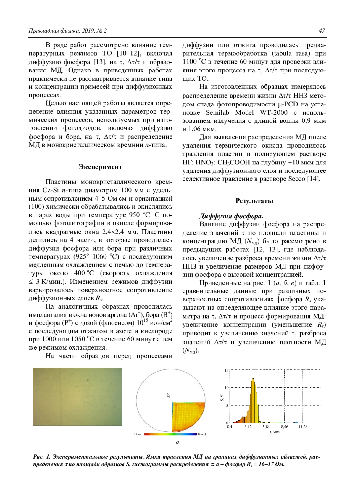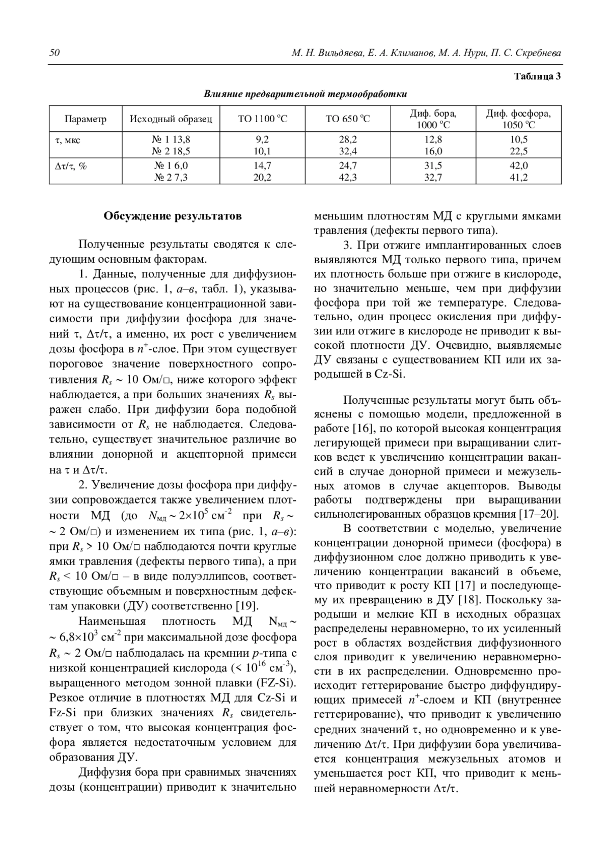 Вильдяева М. Н., Климанов Е. А., Нури М. А., Скребнева П. С. Влияние режимов диффузионных процессов на время жизни неосновных носителей за-ряда в кремнии, выращенном методом Чохральского 46