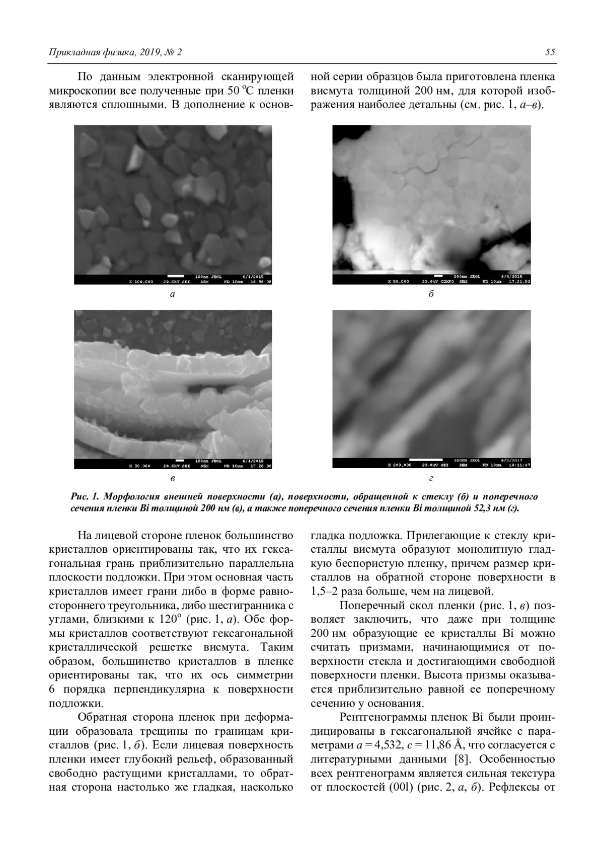 Березин В. М., Клещев Д. Г., Жеребцов Д. А. Особенности формирования нанопленок висмута на стекле электронно-лучевым распы-лением 53