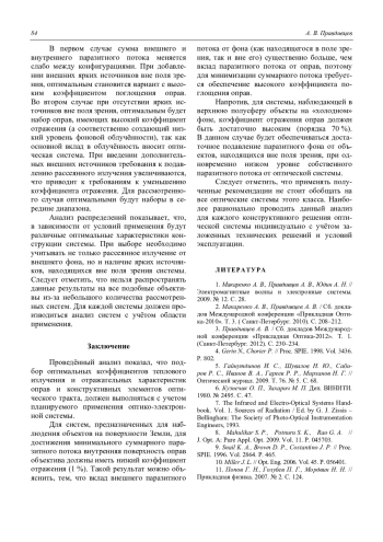 Проведённый анализ показал, что подбор оптимальных коэффициентов теплового излучения и отражательных характеристик оправ и конструктивных элементов оптического тракта, должен выполняться с учетом планируемого применения оптико-электронной системы.