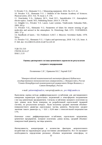 13. Привалов В.Е., Шеманин В.Г. Параметры лидаров для дистанционного зондирования газовых молекул и аэрозоля в атмосфере. С-Пб.: Балт. ГТУ. ВОЕНМЕХ. 2001. 57 с.