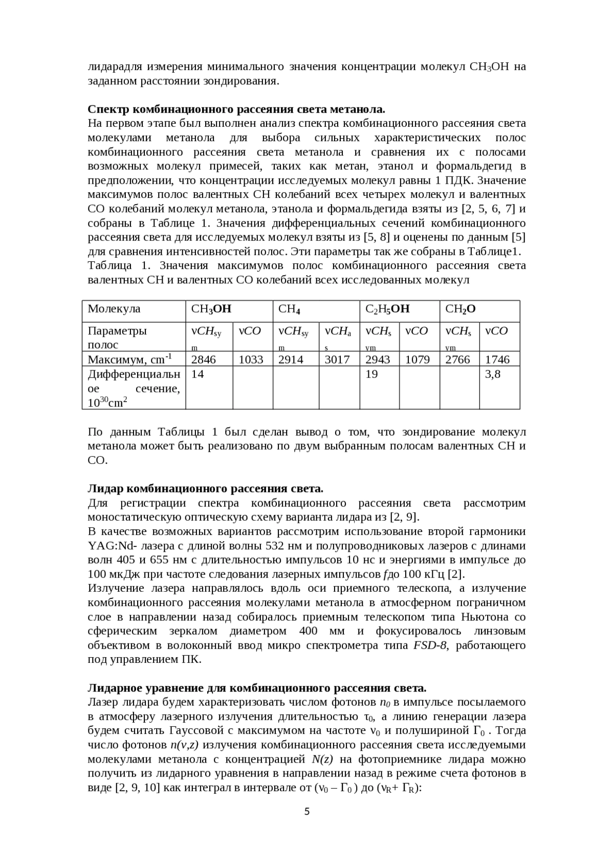 Введение В настоящее время метанол все активнее используется в качестве замены традиционным видам моторного топлива [1]: он гораздо дешевле, и при этом наносит гораздо меньший вред окружающей среде, чем привычные бензин, керосин или дизтопливо. Поэтому становится актуальной разработка новых лидаров для измерения концентрации молекул метанола CH3OH как загрязняющего вещества на уровне предельно-допустимых концентраций (ПДК) в атмосферном воздухе. Для метанола, класс опасности которого 3, значение ПДК 1.0 мг/м3 [2, 3] или порядка 1.9·1016 см-3.